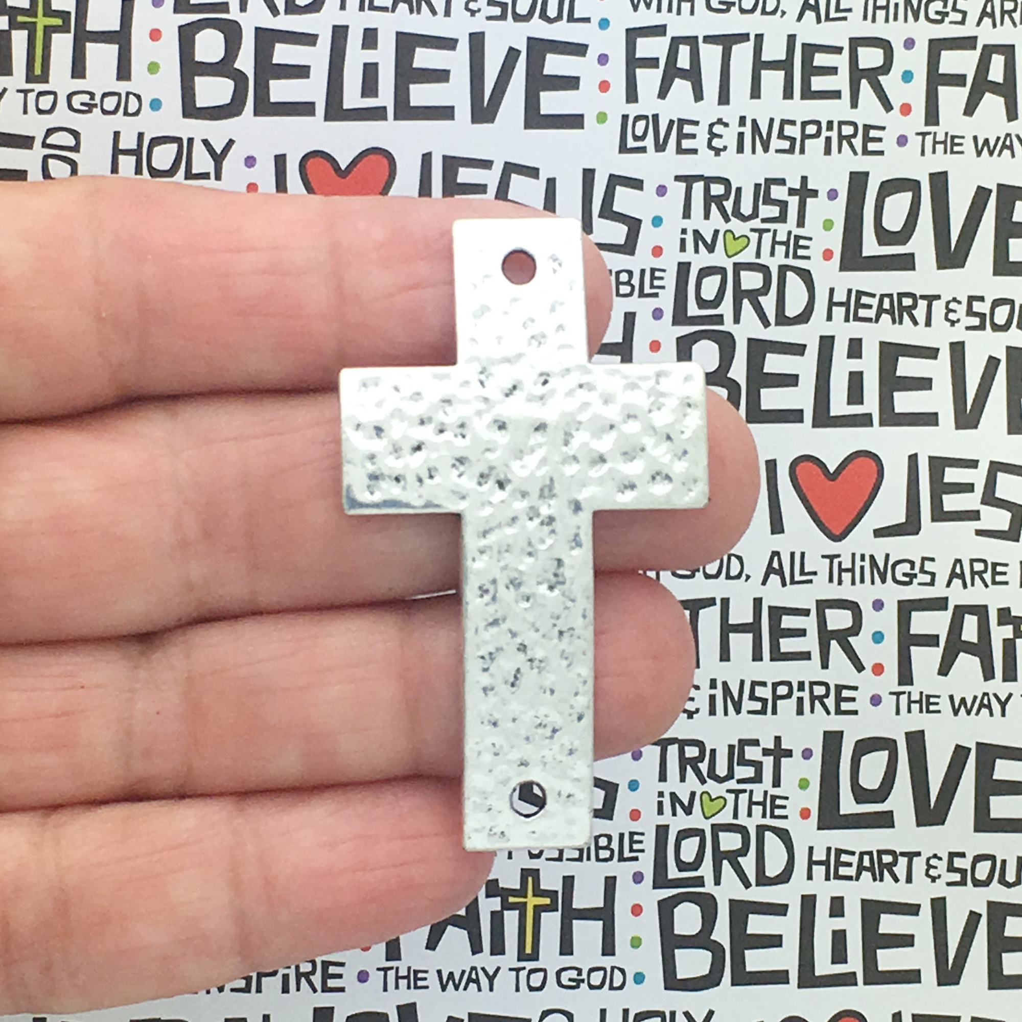 You will receive 2 – Hammered Cross Bracelet Connector in Antique Silver Pewter 29x50mm by TIJC! These charms are a quality Silver Pewter for all your jewelry and crafting projects!