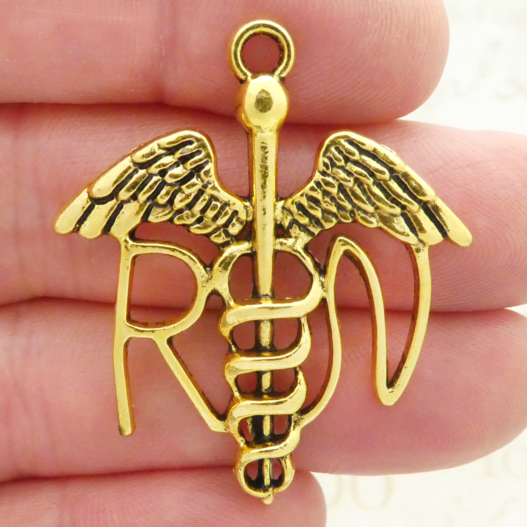 4 Gold RN Caduceus Medical Charm Nurse Pendant 44x37mm by TIJC SP1353