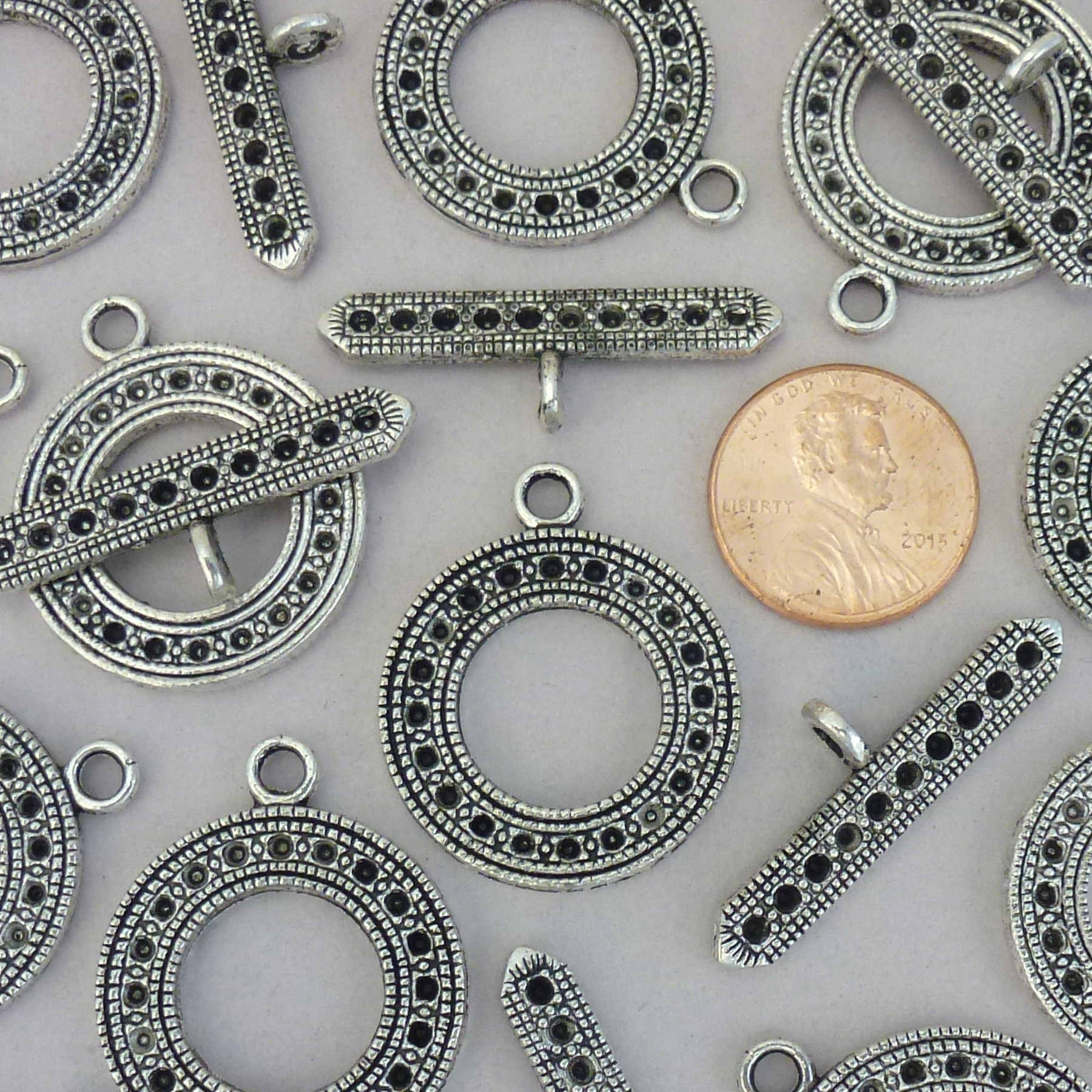You will receive 4 Sets – Large Double Sided Bali Style Round Toggle Clasp in Antique Silver Pewter! These charms are a quality Silver Pewter for all your jewelry and crafting projects!