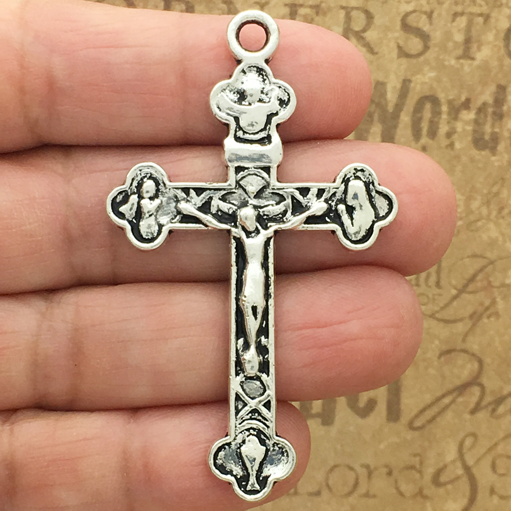 You will receive 4 – For Rosary Large Silver Catholic Cross Pendant in Antique Pewter! Use this Antique Silver Pewter Cross for Rosary Parts in making a Catholic Rosary by TIJC. These charms are a quality Silver Pewter for all your jewelry and crafting projects!