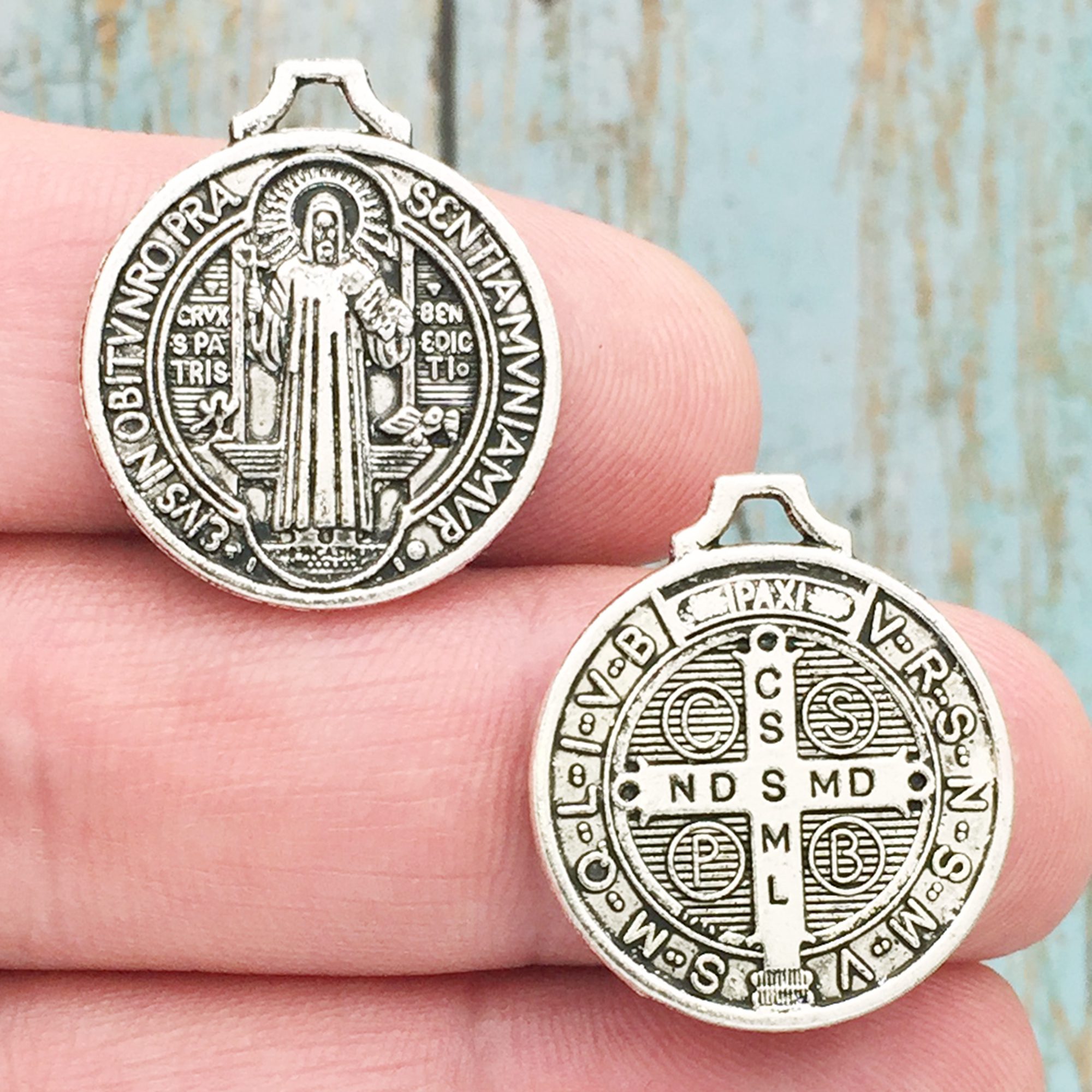 You will receive 4 – Medium St Benedict Medal in Silver Pewter by TIJC. These charms are a quality Silver Pewter for all your jewelry and crafting projects!