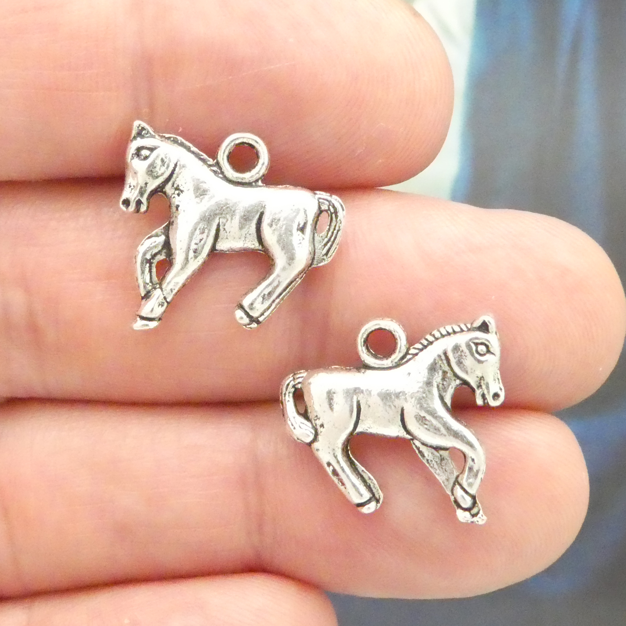 You will receive BULK 40 – Double Sided Small Horse Pendant in Antique Silver Pewter! These charms are a quality Silver Pewter for all your jewelry and crafting projects!
