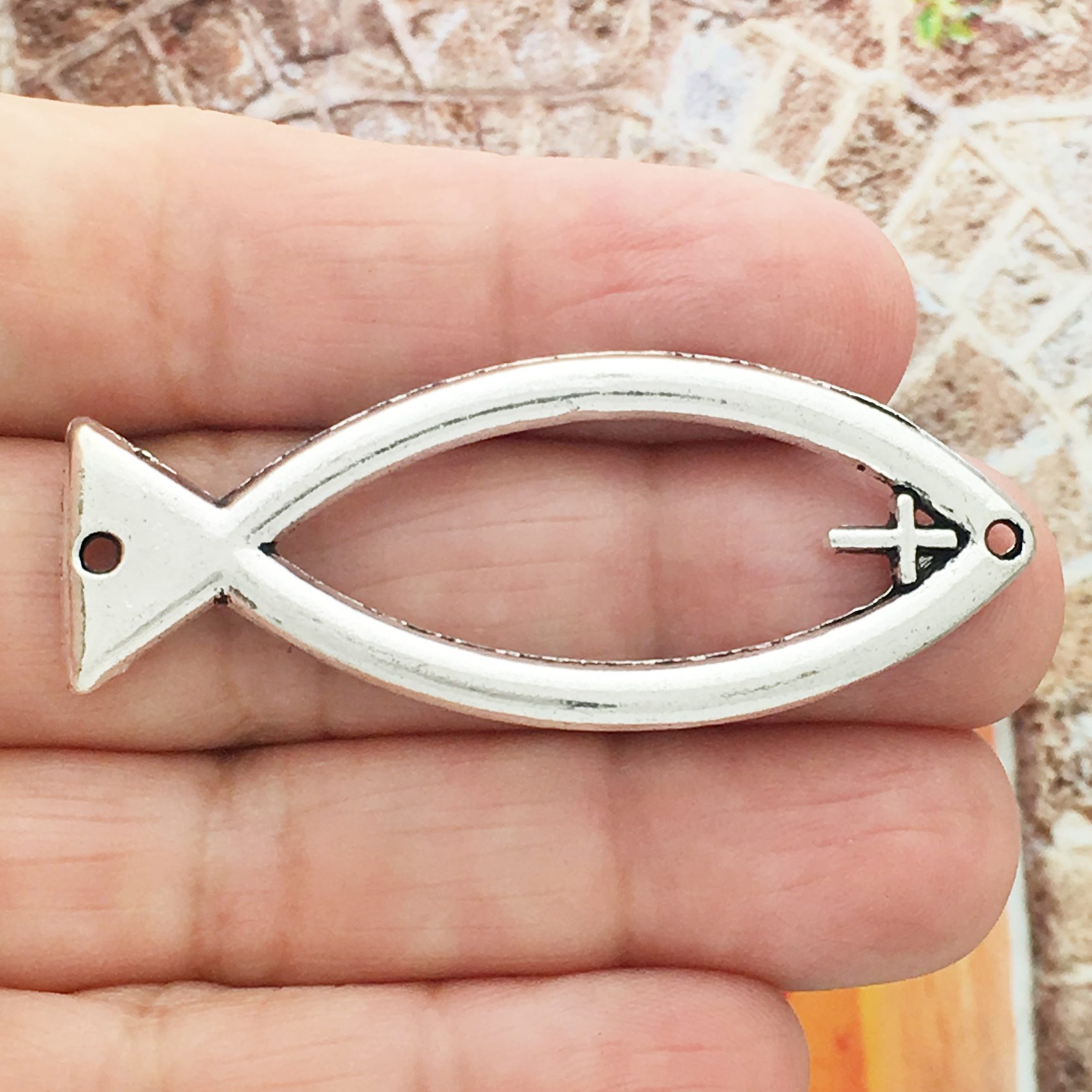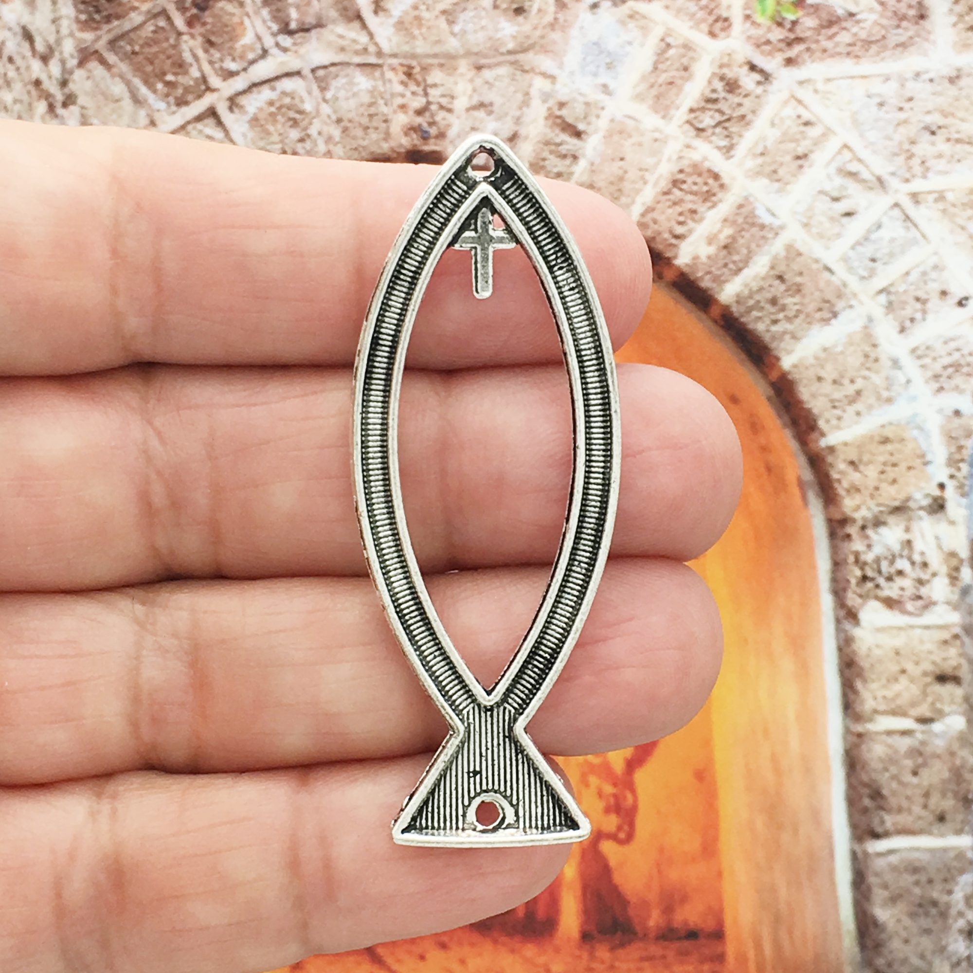 You will receive 5 – Ichthys Jesus Fish Christian Symbol Bracelet Connector in Antique Silver Pewter 20x52mm by TIJC! These charms are a quality Silver Pewter for all your jewelry and crafting projects!