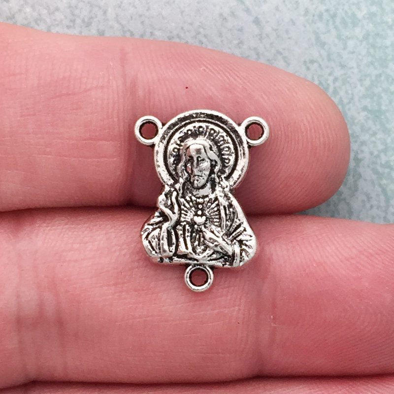 You will receive 5 – Sacred Heart of Jesus Silver Rosary Center in Antique Pewter by TIJC. These charms are a quality Silver Pewter for all your jewelry and crafting projects!