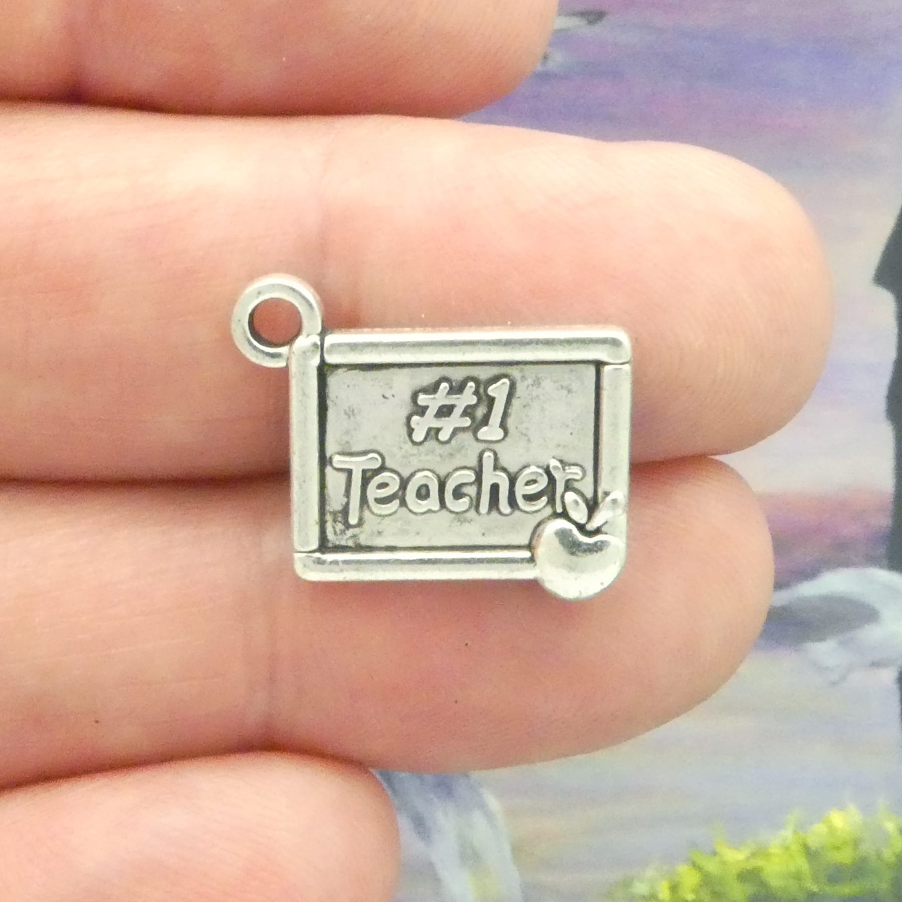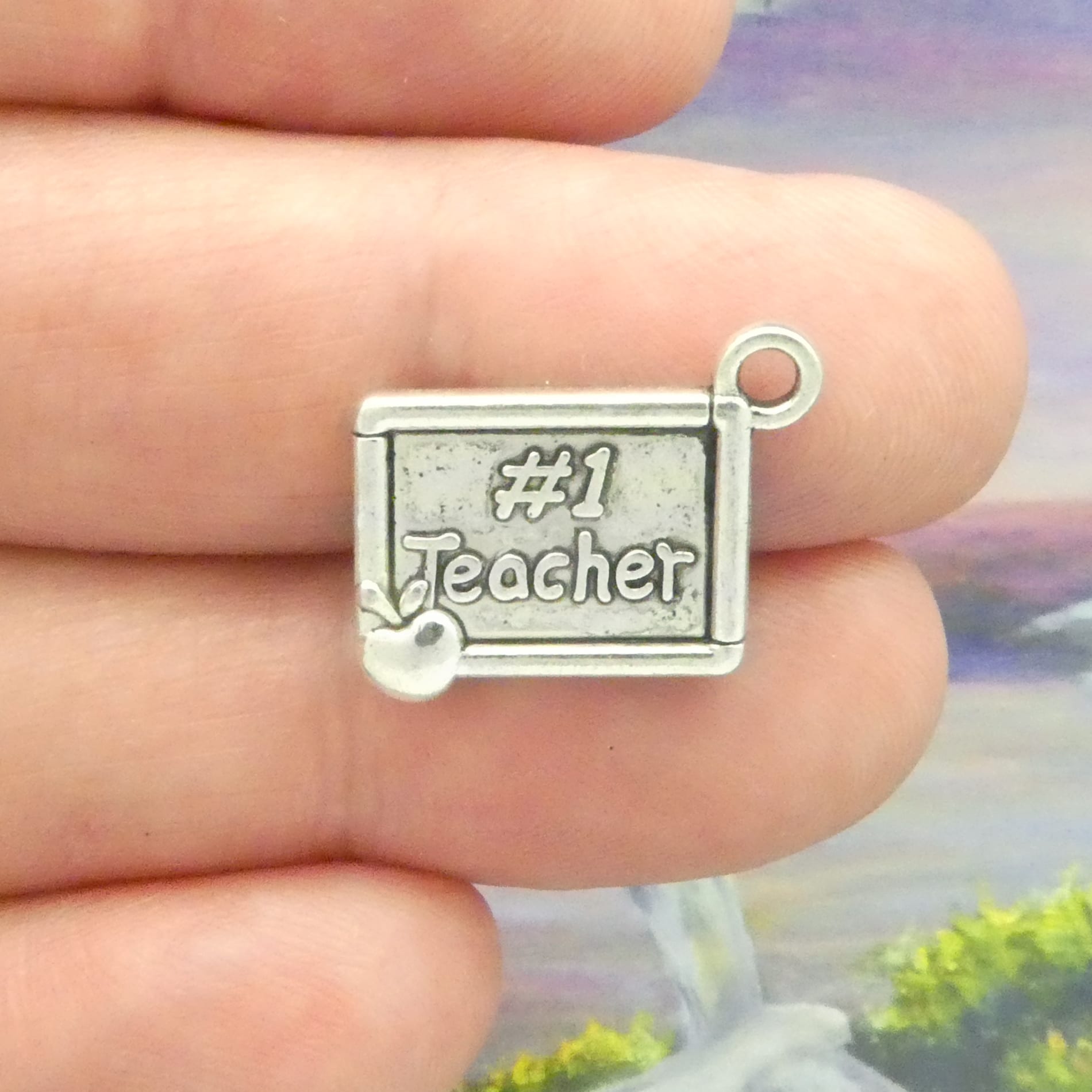 You will receive 5 – #1 Teacher Charms in Antique Silver Pewter! These charms are a quality Silver Pewter for all your jewelry and crafting projects!
