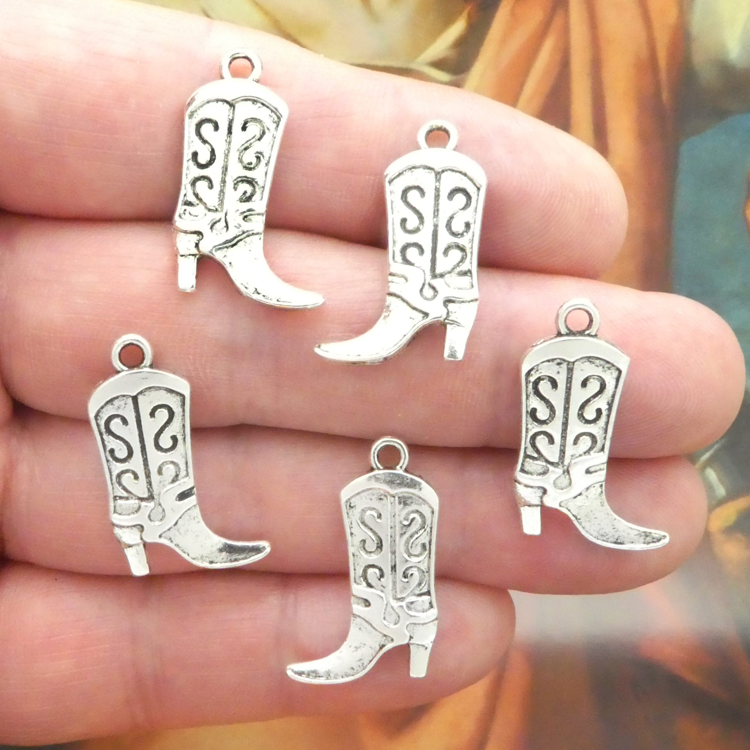 You will receive 5 – Double Sided Cowboy Silver Boot Charms in Antique Pewter 25x16mm by TIJC! These charms are a quality Silver Pewter for all your jewelry and crafting projects!
