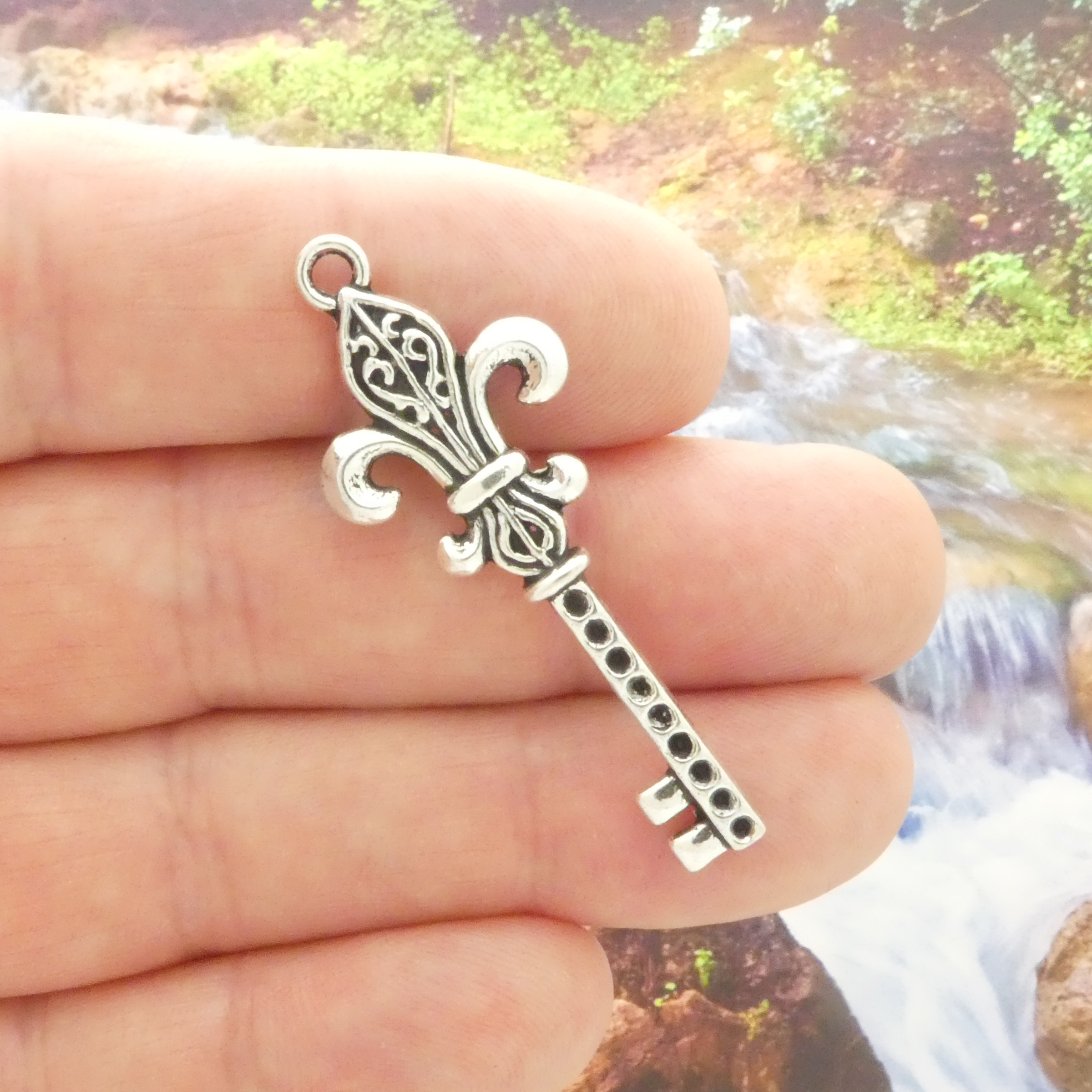 5 Silver Fleur De Lis Key Charm Pendant by TIJC SP0091