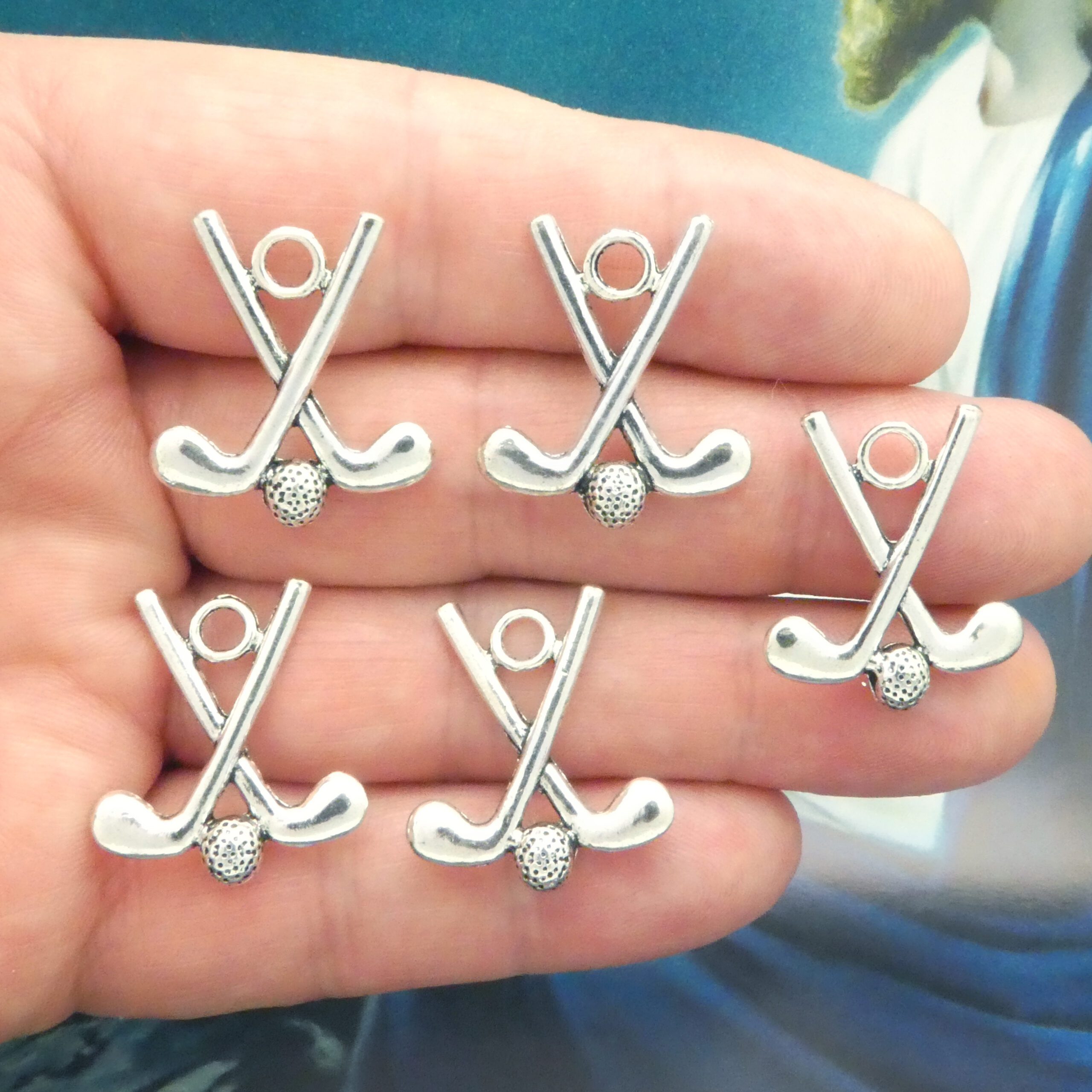 You will receive 5 – Golf Charm in Antique Silver Pewter by TIJC. These charms are a quality Silver Pewter for all your jewelry and crafting projects!