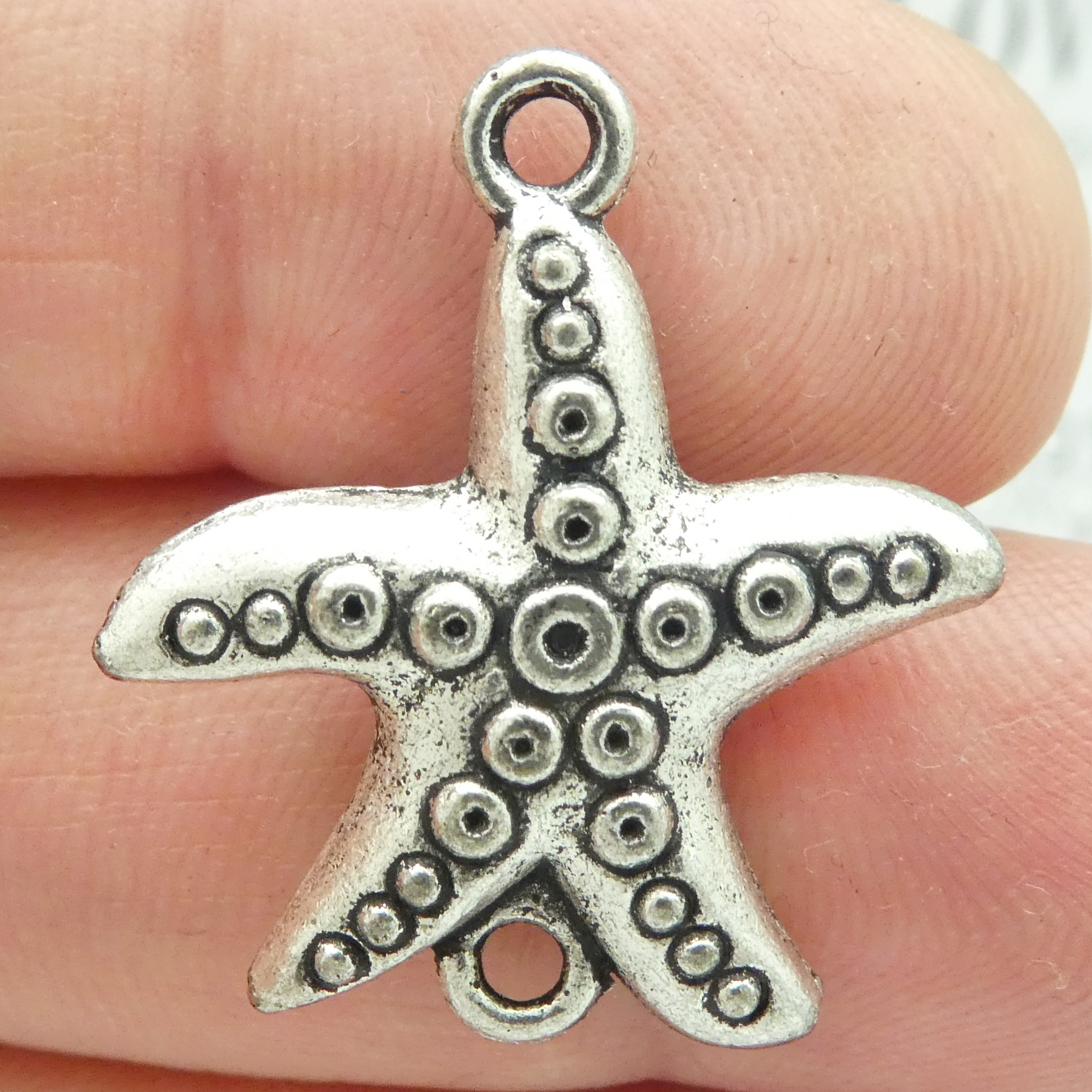 You will receive 5 – Double Sided Starfish Bracelet Connector in Antique Silver Pewter! These charms are a quality Silver Pewter for all your jewelry and crafting projects!
