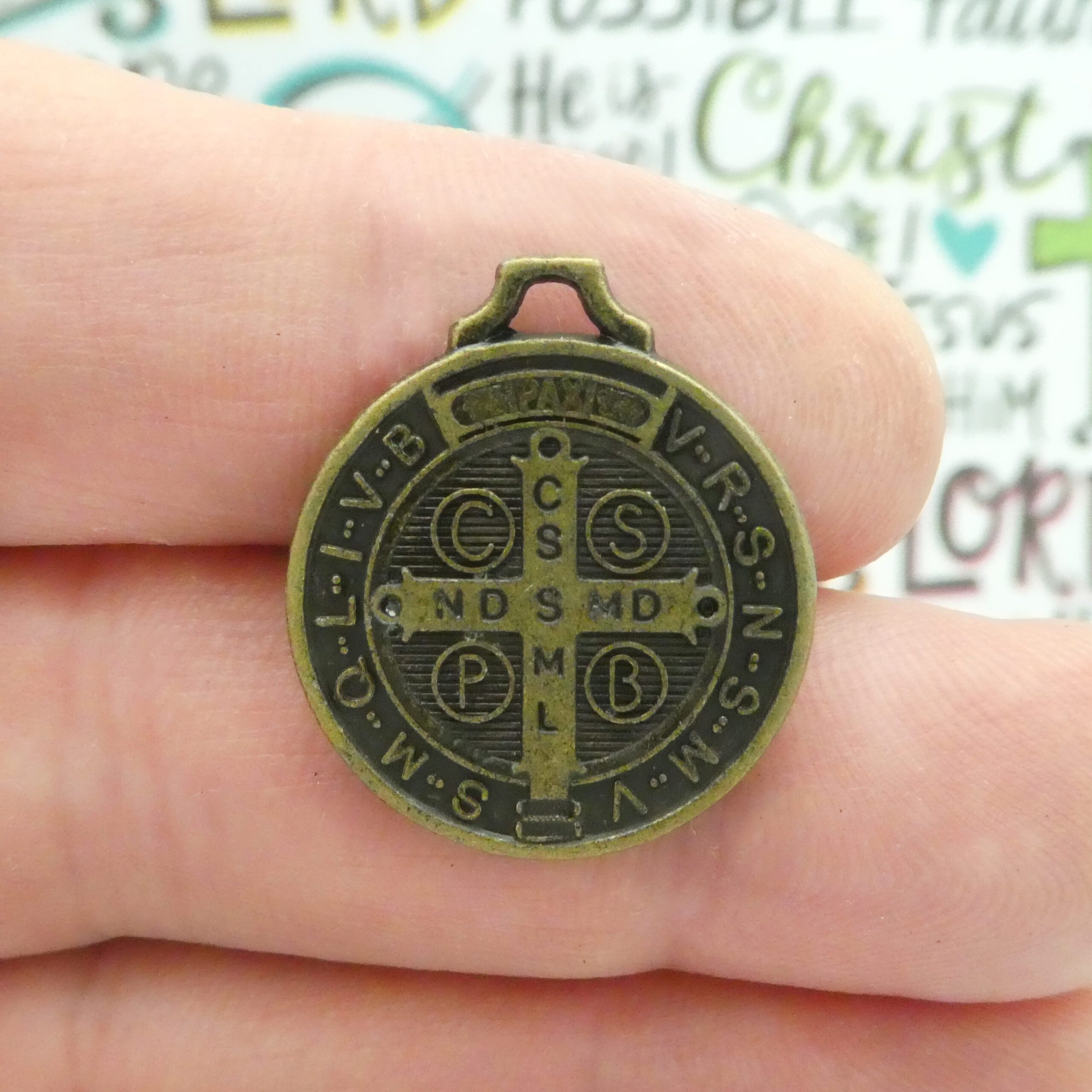 You will receive 5 – St Benedict Medal in Bronze Pewter by TIJC. These charms are a quality Pewter for all your jewelry and crafting projects!