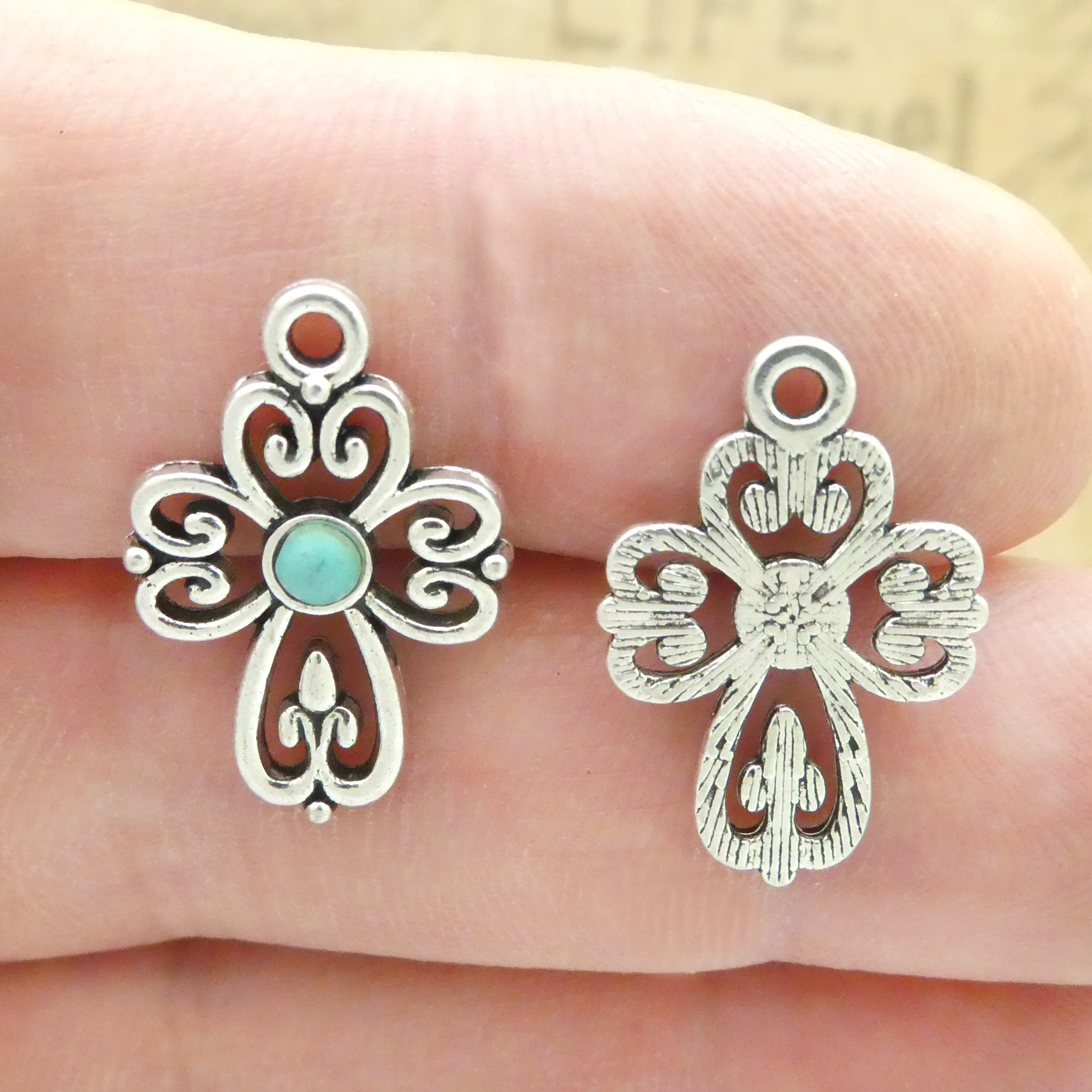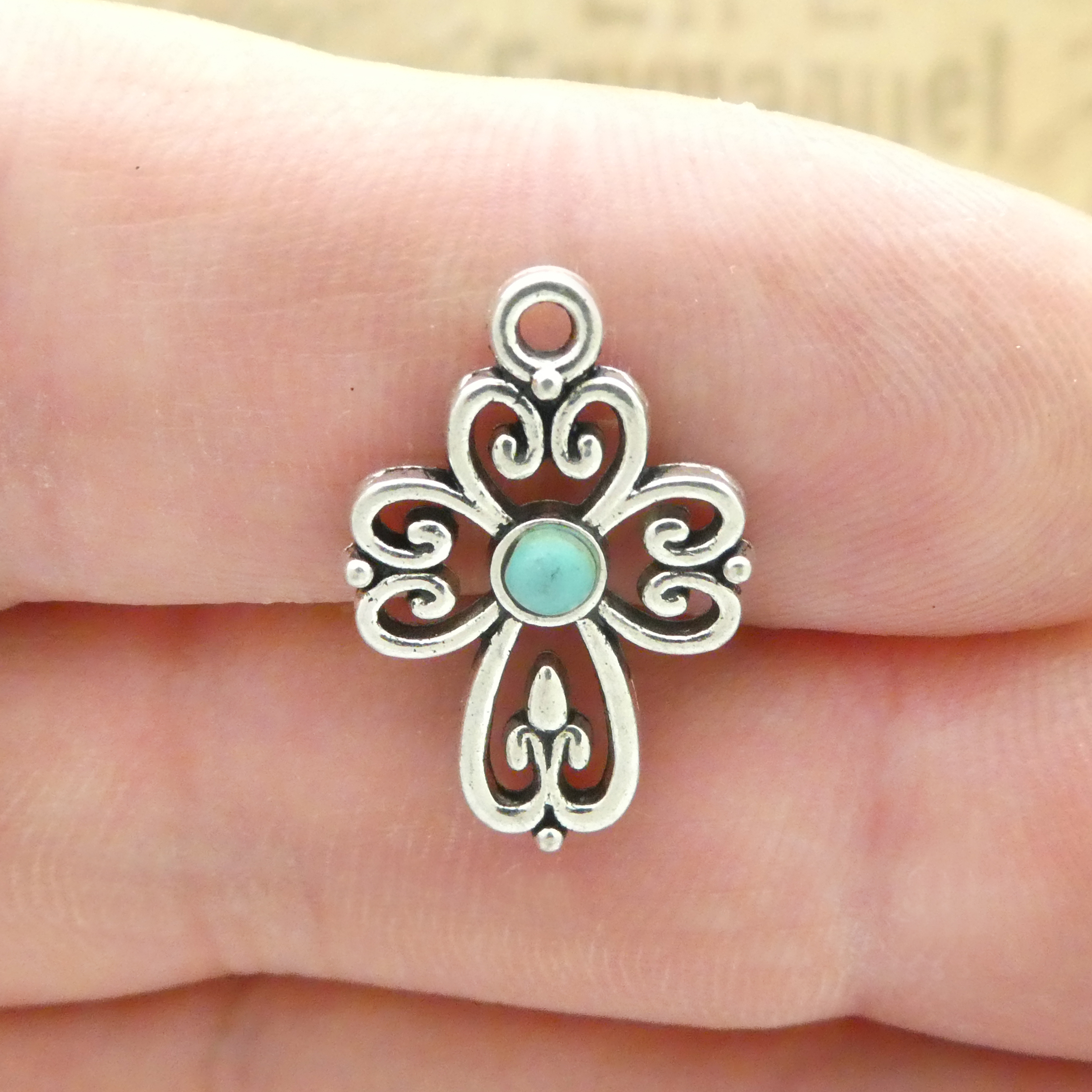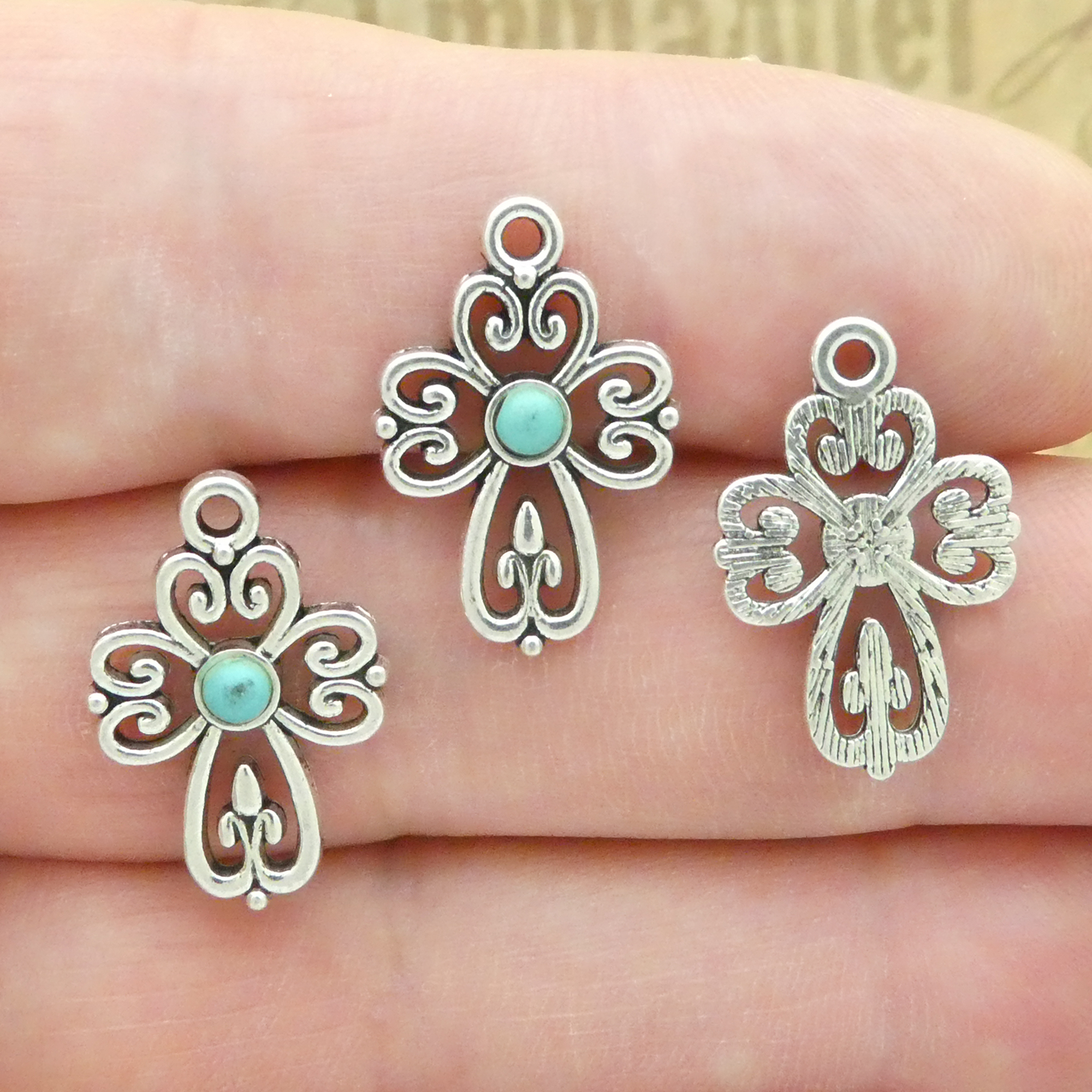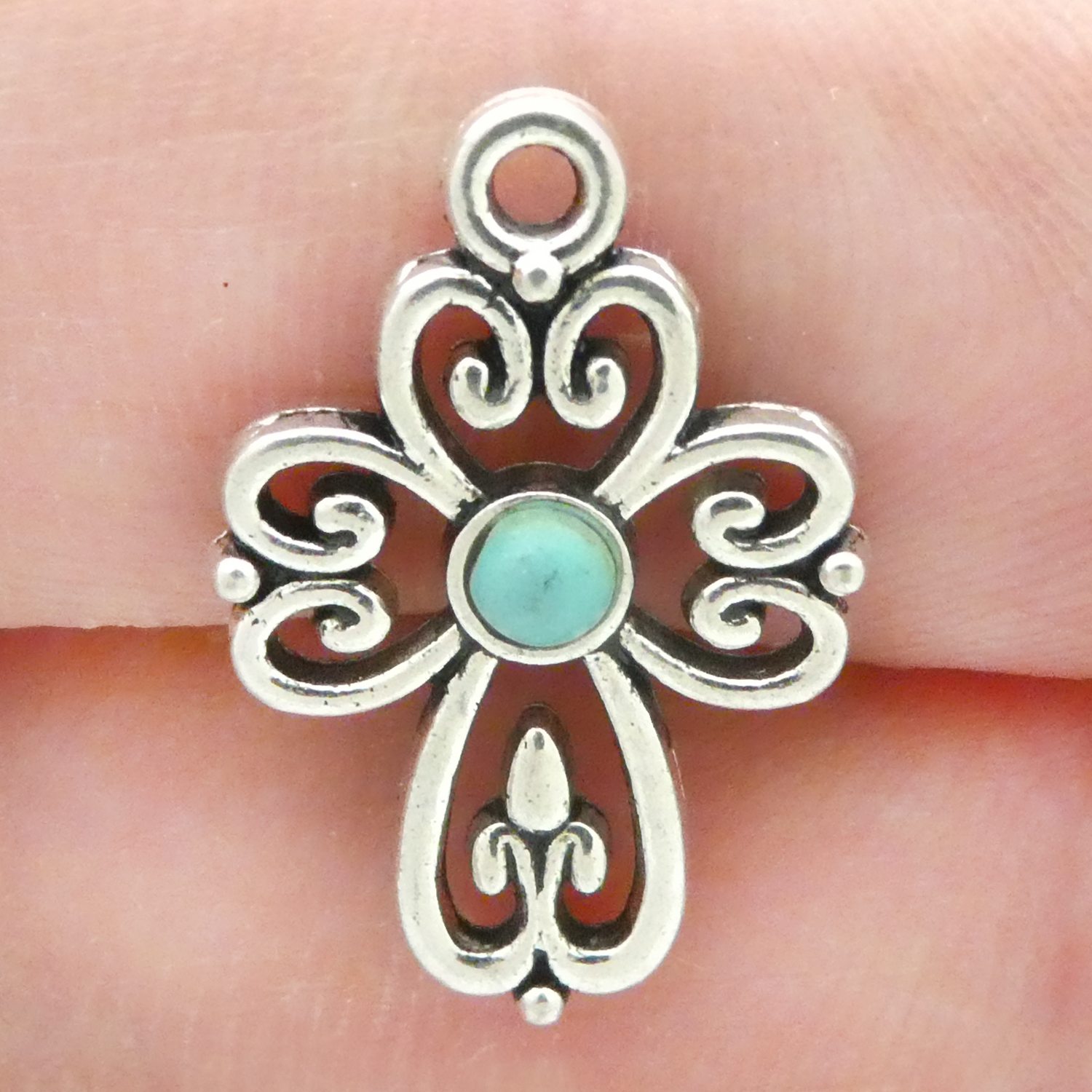You will receive 5 – Ornate Turquoise Southwest Silver Cross Pendant in Pewter by TIJC! These charms are a quality Silver Pewter for all your jewelry and crafting projects!