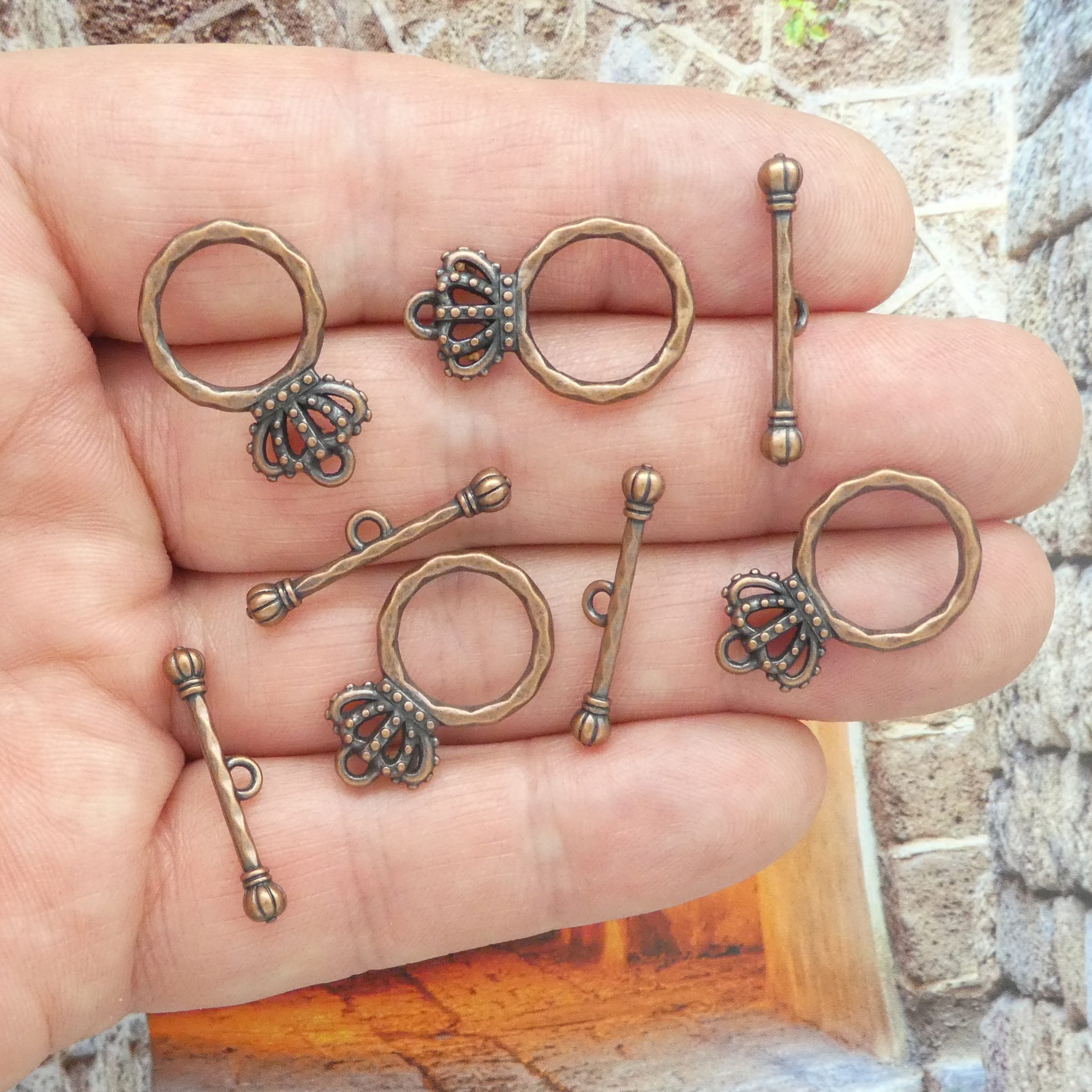 You will receive 6 Sets – Double Sided Crown Toggle Clasp in Antique Copper Pewter! These charms are a quality Pewter for all your jewelry and crafting projects!