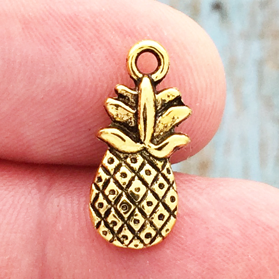 You will receive 6 – Gold Pineapple Charm in Pewter by TIJC! These charms are a quality Pewter for all your jewelry and crafting projects!