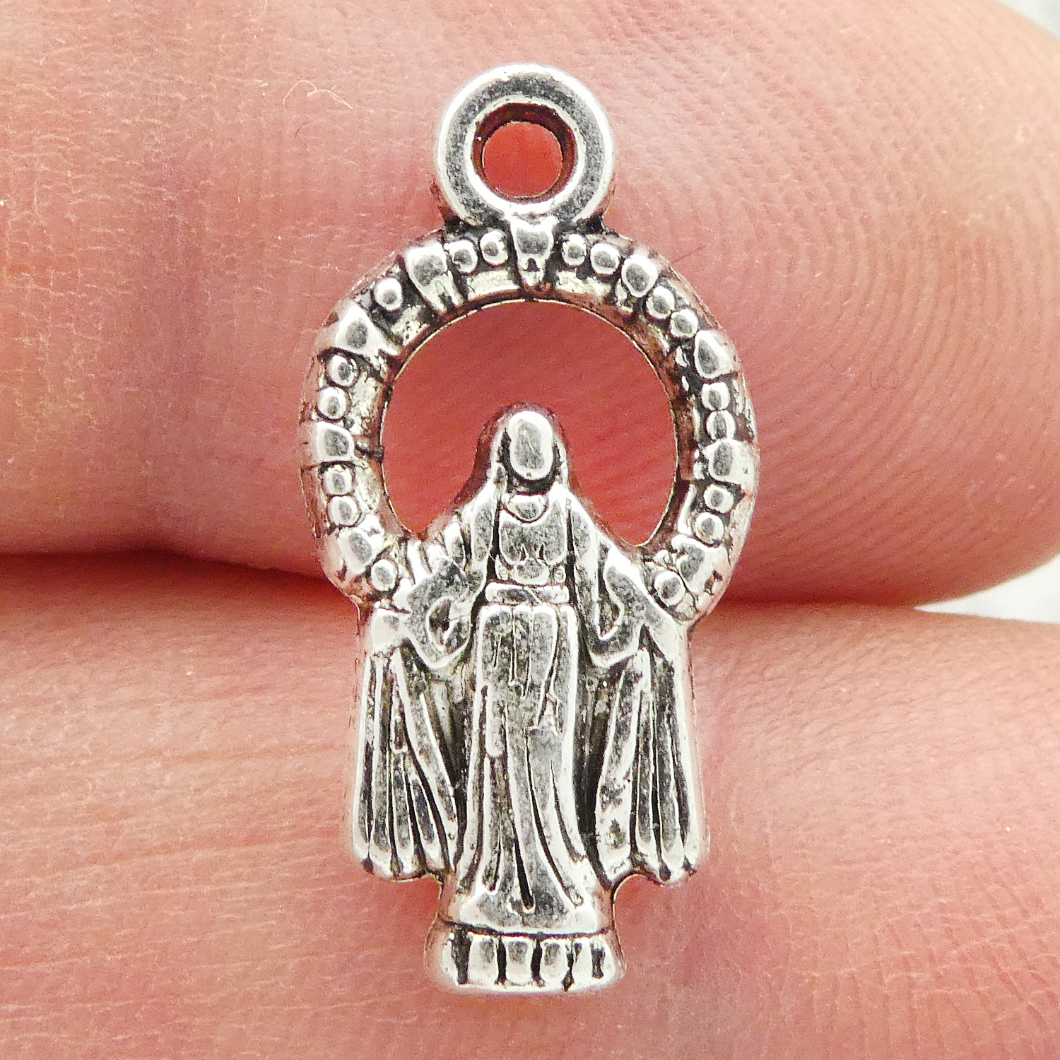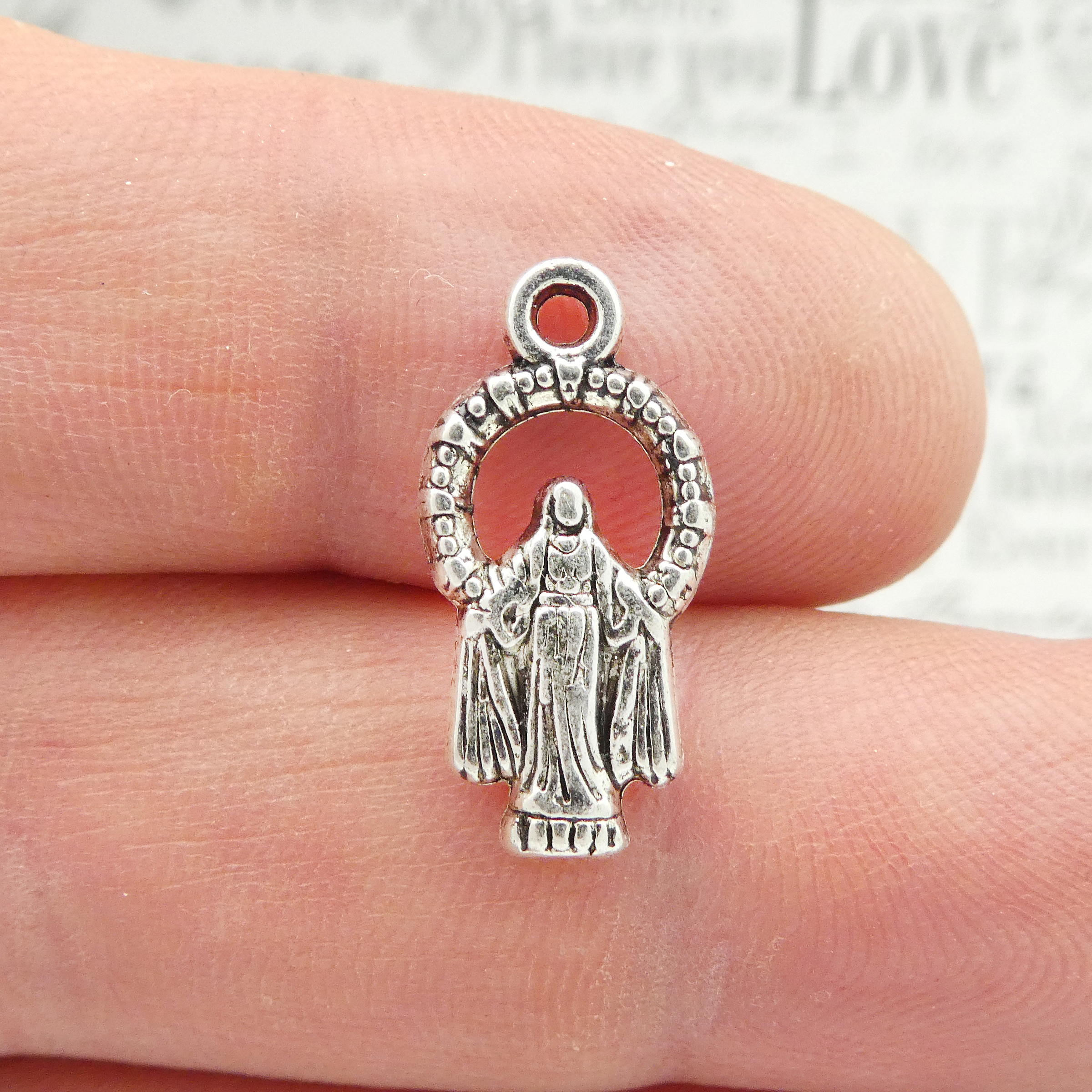 You will receive 6 – Blessed Mother Mary Pendant in Antique Silver Pewter. These charms are a quality Silver Pewter for all your jewelry and crafting projects!