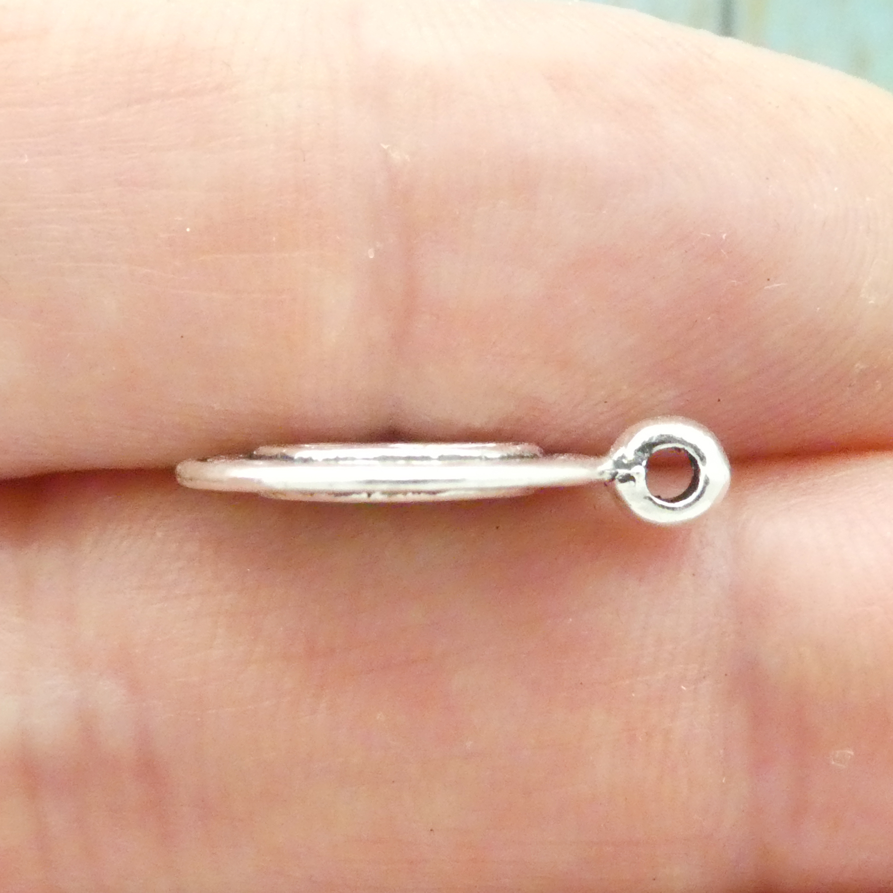 You will receive 6 – Small Hammered Peace Charms in Antique Silver Pewter! These charms are a quality Silver Pewter for all your jewelry and crafting projects!