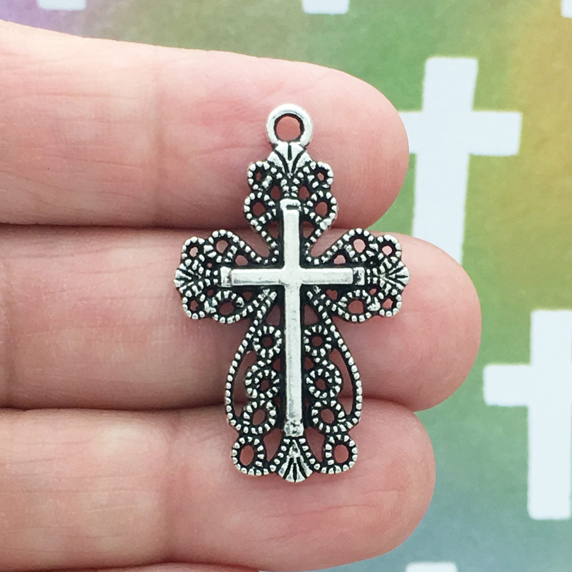 You will receive 6 – Christian Filigree Cross Charms in Silver Pewter! These charms are a quality Silver Pewter for all your jewelry and crafting projects!