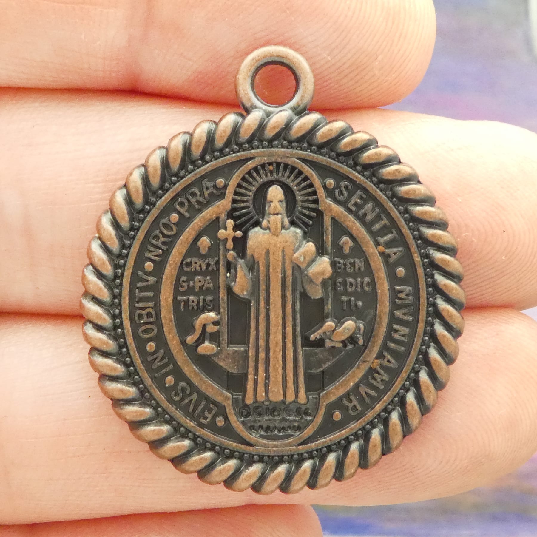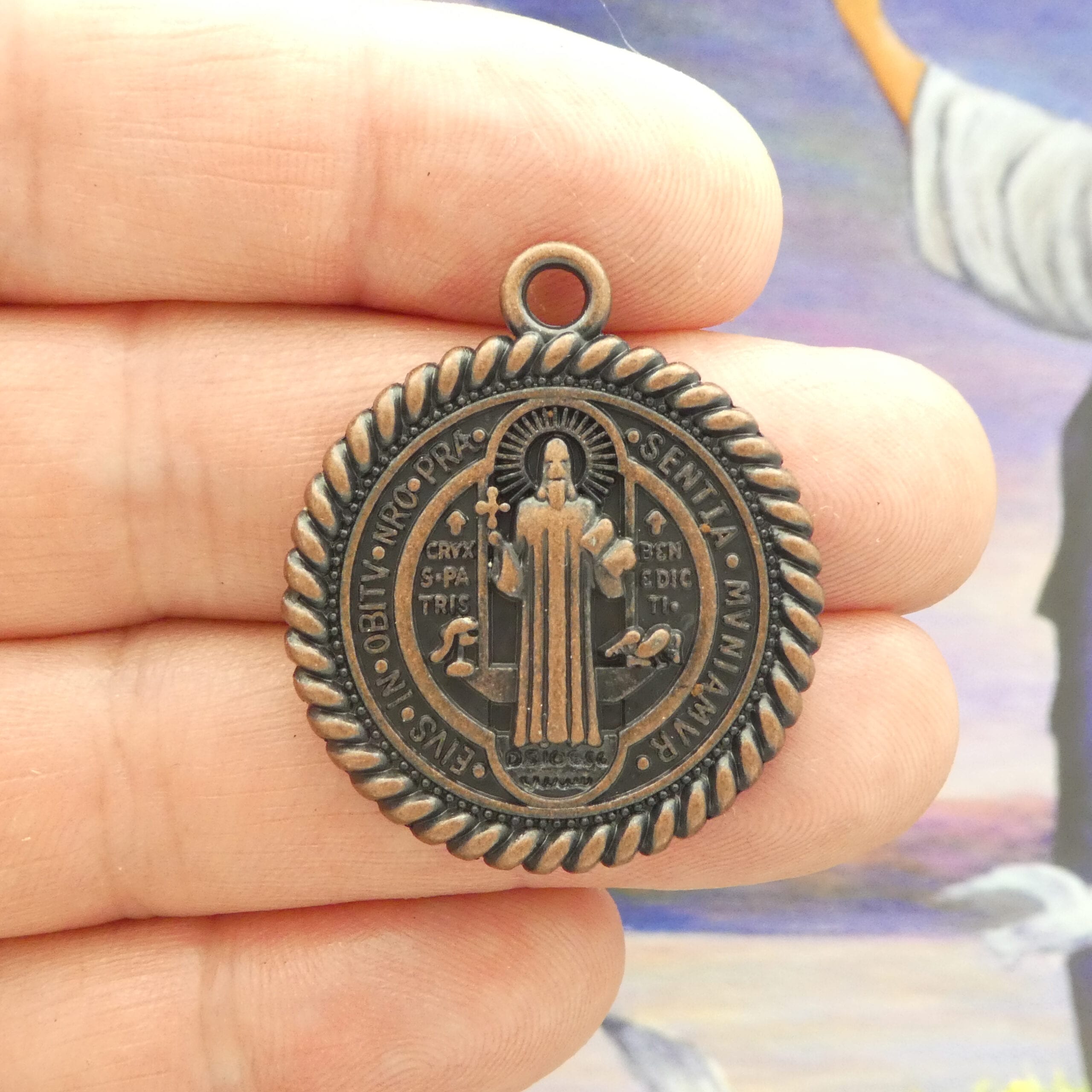 You will receive BULK 6 – Copper Medium St Benedict Medal with Rope Accent in Pewter by TIJC. These charms are a quality Pewter for all your jewelry and crafting projects!