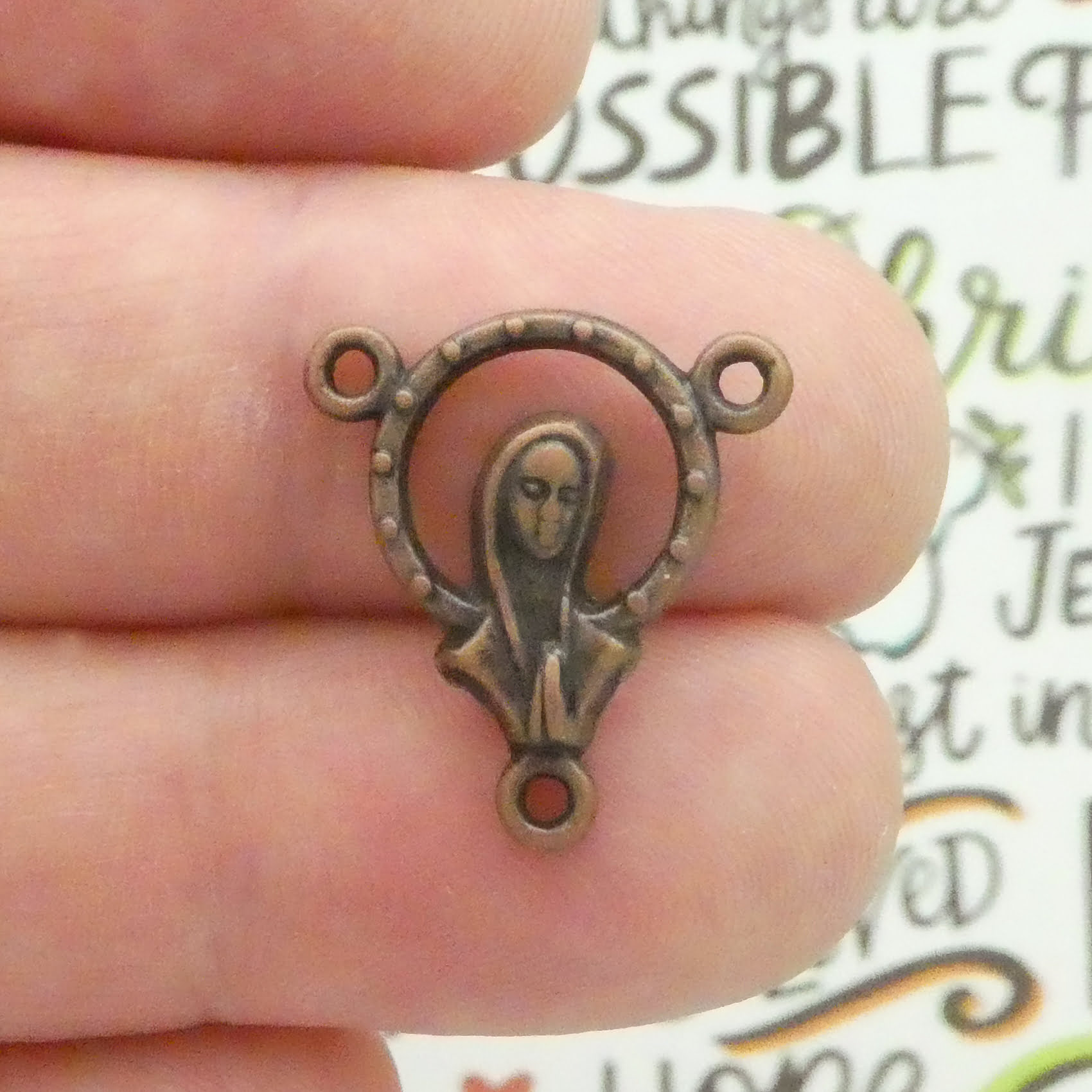 You will receive 6 – Jesus and Virgin Mary Rosary Supplies in Antique Copper Pewter by TIJC. These charms are a quality Pewter for all your jewelry and crafting projects!