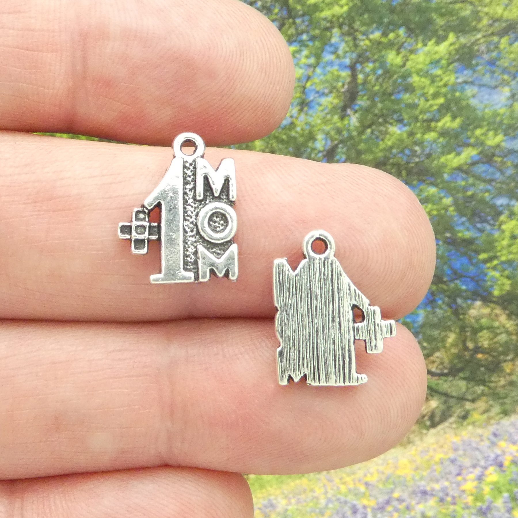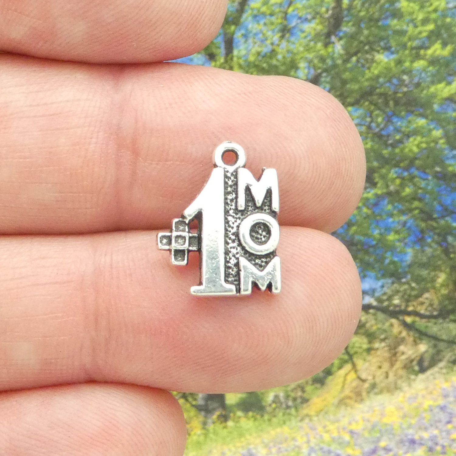 You will receive 8 – #1 Mom Charms in Antique Silver Pewter. These charms are a quality Silver Pewter for all your jewelry and crafting projects!
