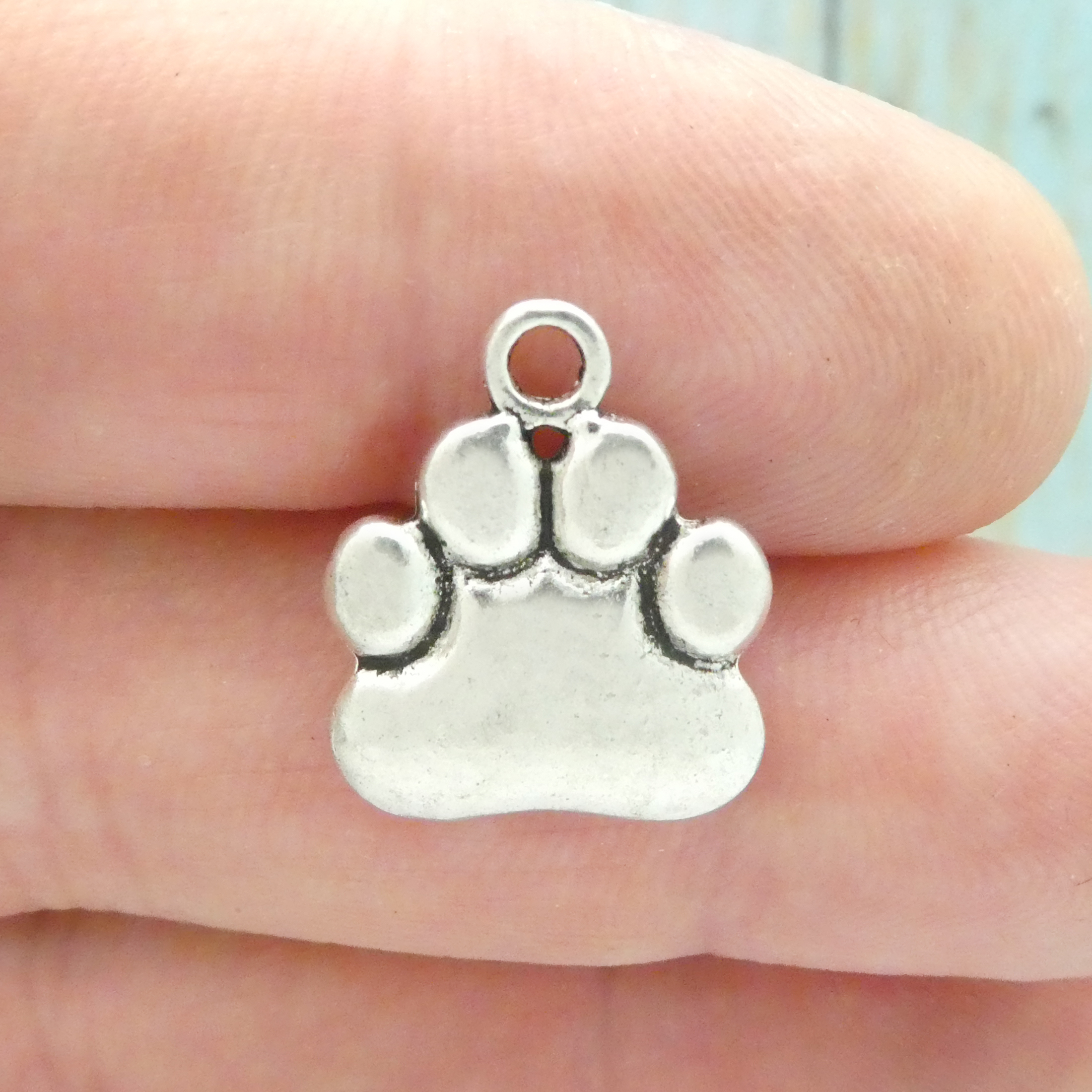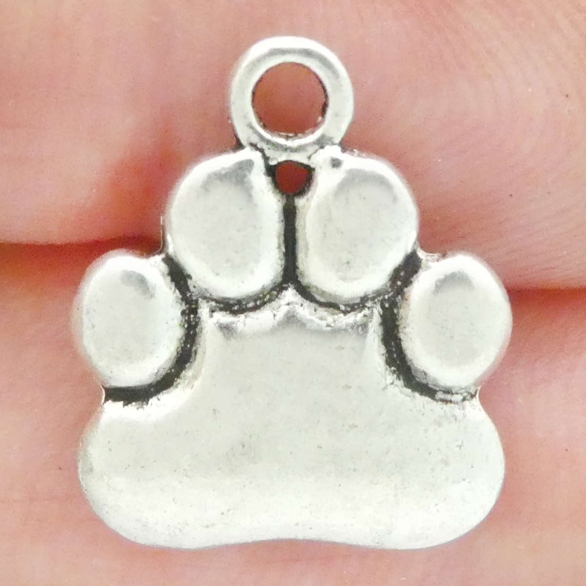 You will receive 8 – Medium Paw Print Charms in Silver Pewter. These charms are a quality Silver Pewter for all your jewelry and crafting projects!