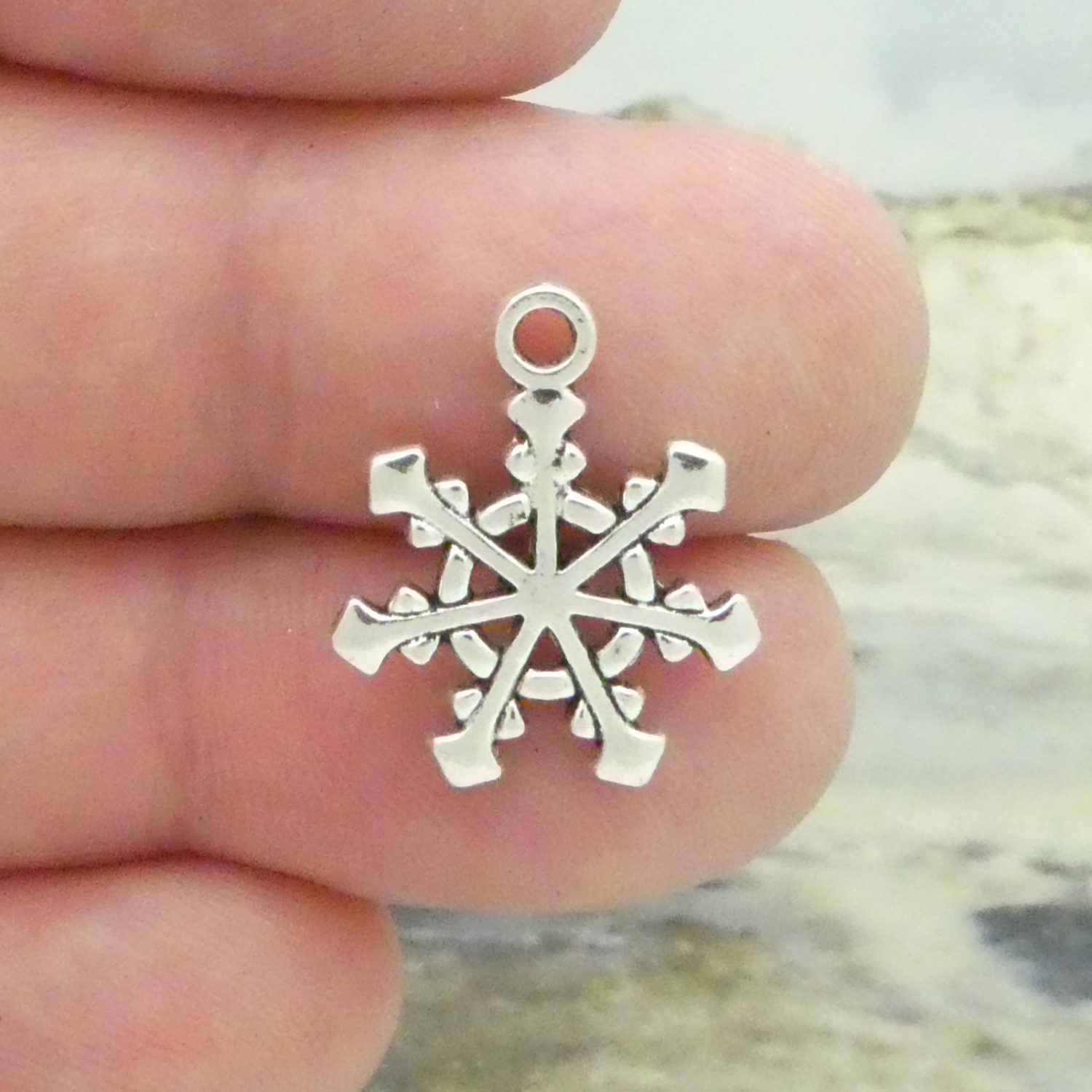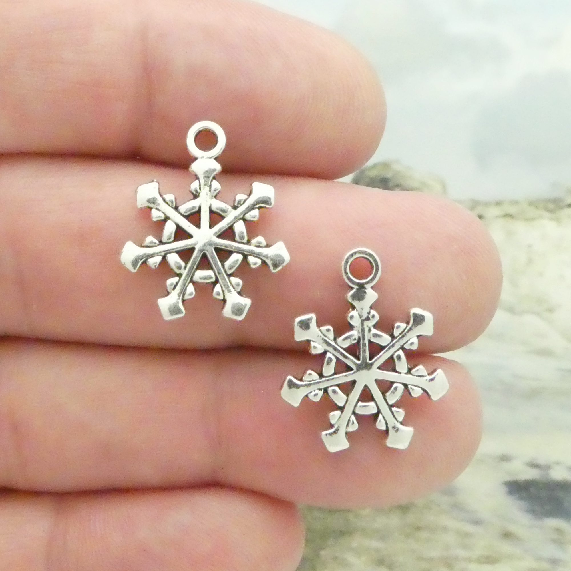 You know Winters approaching when you see the first snowflakes falling. Delight yourself with these cute snowflake charms. A great gift for Christmas promotional giveaways or for Christmas Parties. These charms are a great size for wine charms. Search our other Winter pewter charm selections and combine to make glass charm sets or a Christmas themed charm bracelet for your guests.