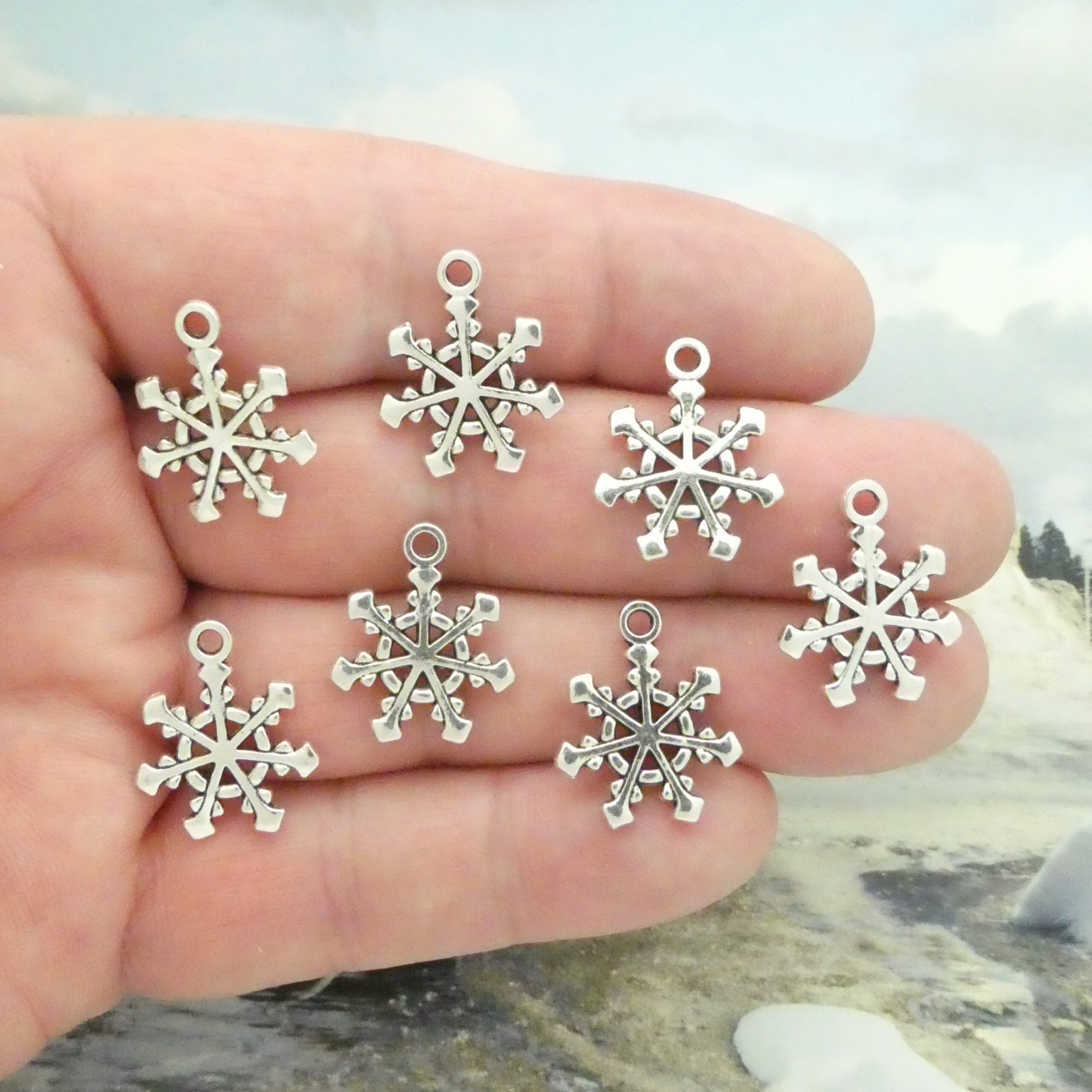 You will receive 8 – Double Sided Detailed Medium Snowflake Winter Charms in Antique Silver Pewter by TIJC. These charms are a quality Silver for all your jewelry and crafting projects!