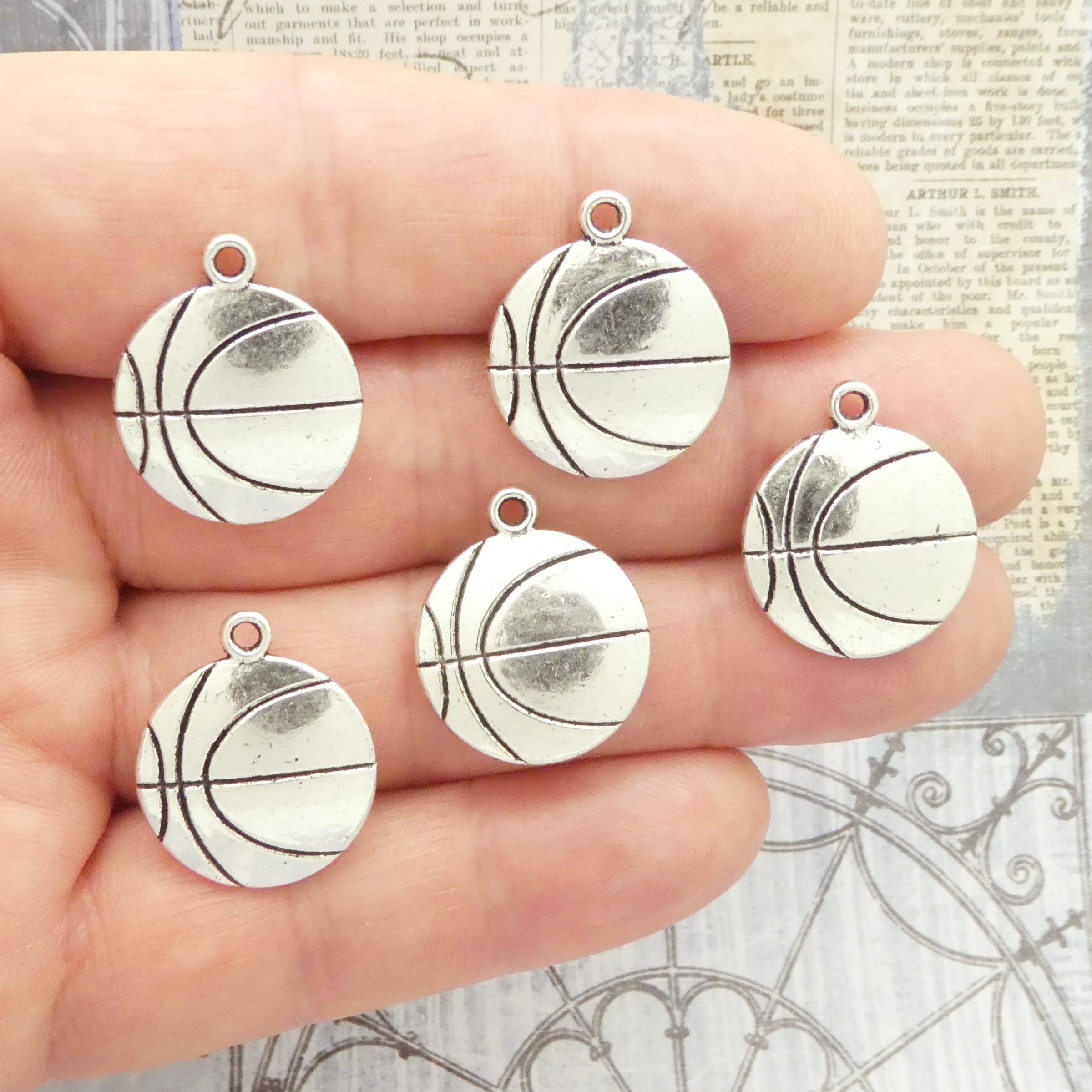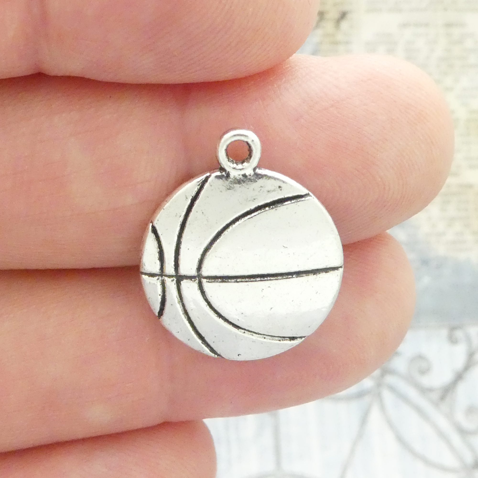 BULK 10 Silver Basketball Charm Pendant 22x19mm by TIJC SP1077B