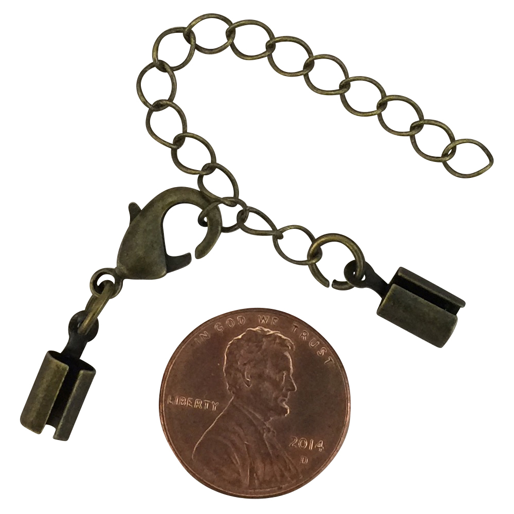 BULK 12 Copper Fold Over Clasp Ends with Lobster Clasp and Extension Chain by TIJC CPLOB002B
