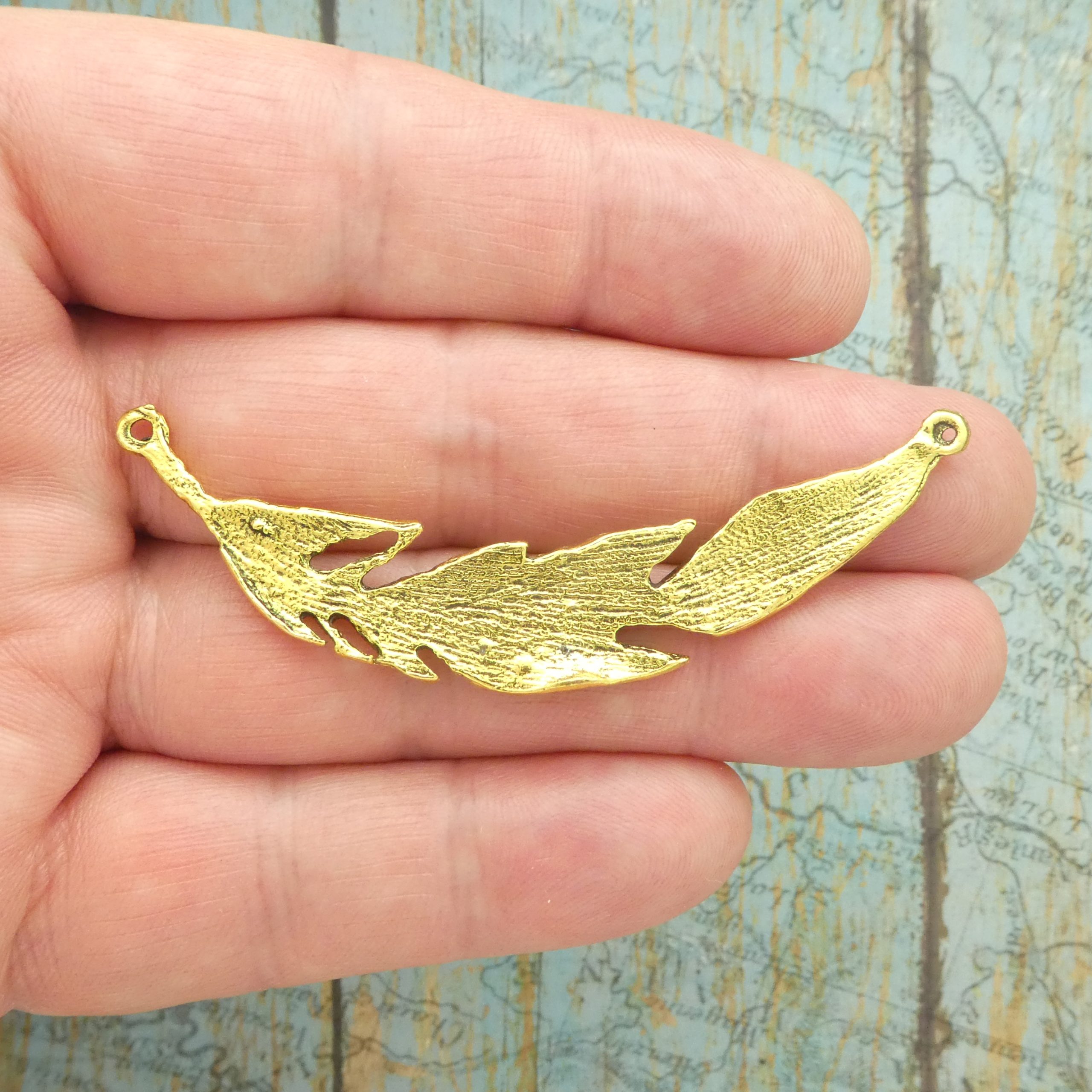 You will receive BULK 12 – Gold Feather Connector Charms in Pewter! These charms are a quality Pewter for all your jewelry and crafting projects!