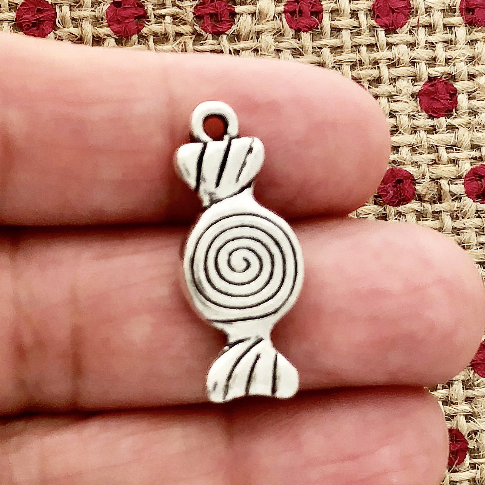 You will receive BULK 20 – Double Sided Hard Candy Charms in Antique Silver Pewter by TIJC. These charms are a quality Silver Pewter for all your jewelry and crafting projects!