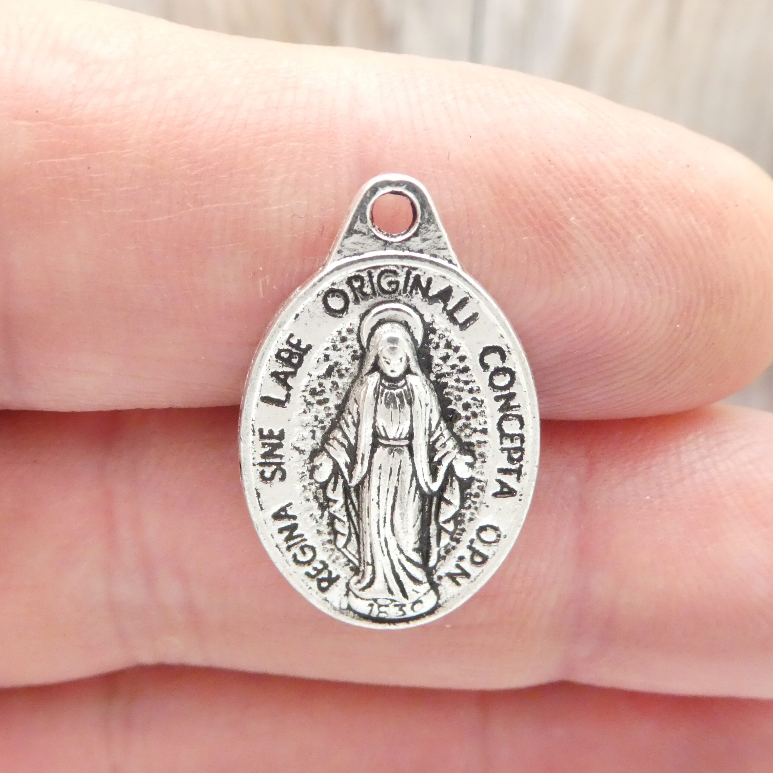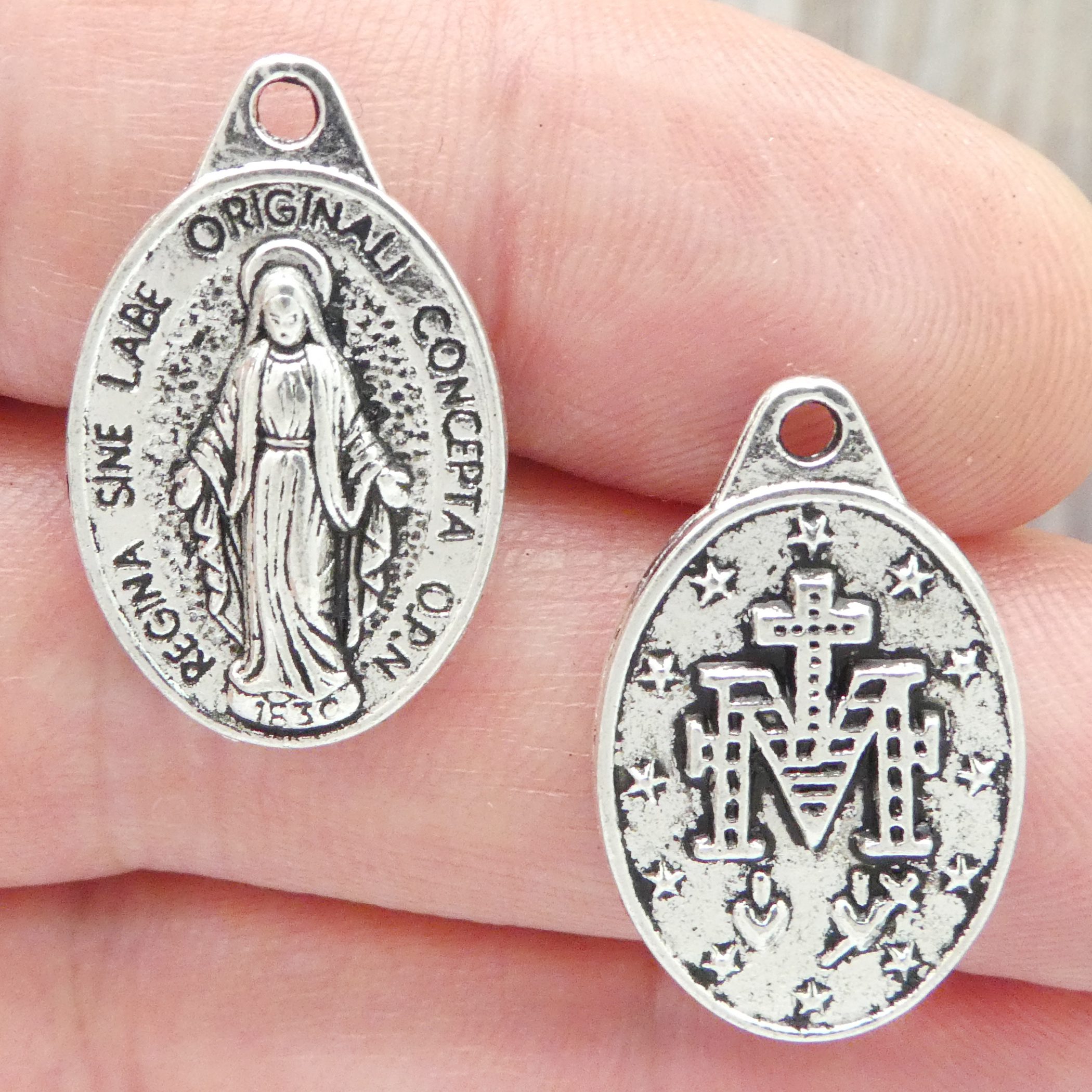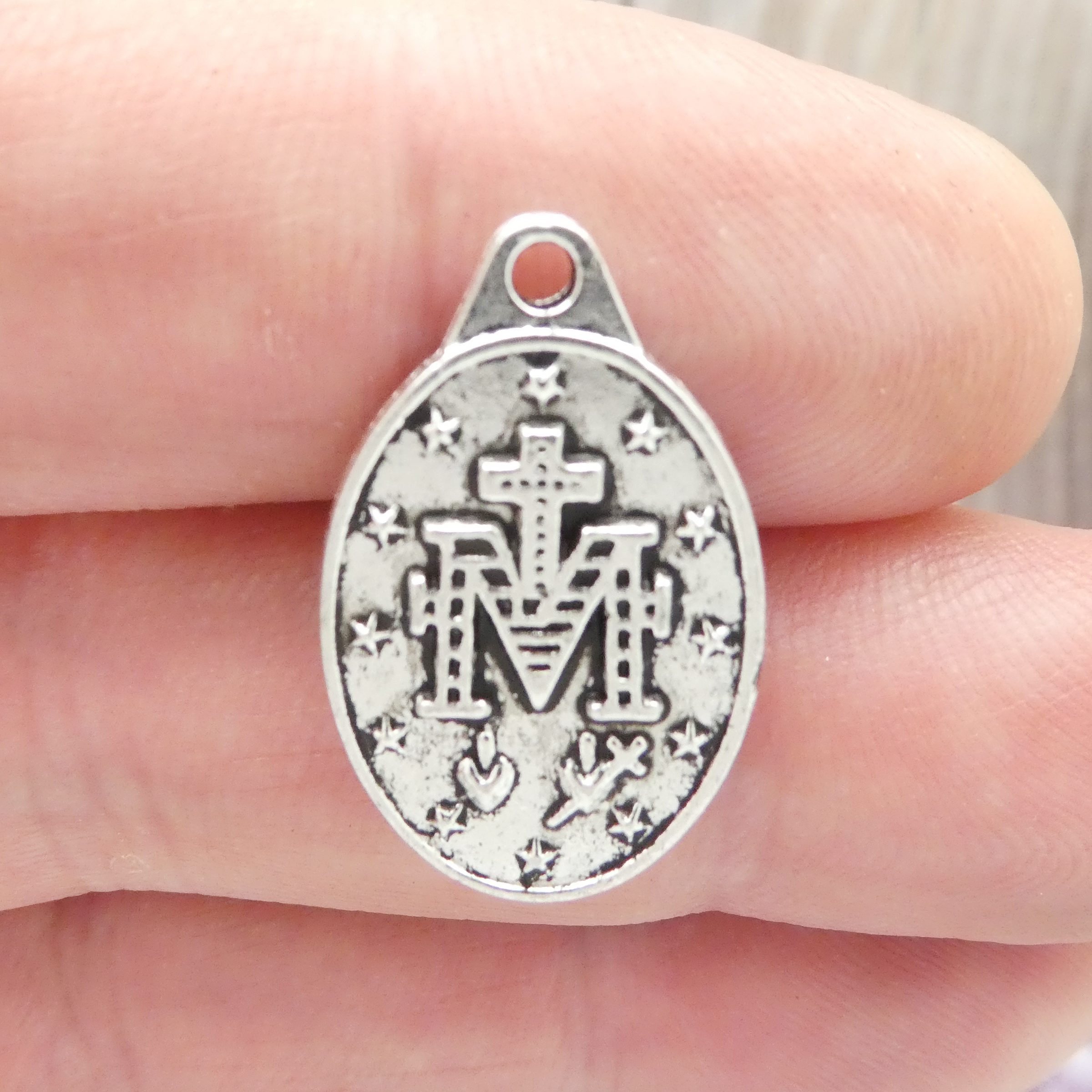 You will receive BULK 20 – Miraculous Medal Mother Mary Pendant in Antique Silver Pewter. These charms are a quality Silver Pewter for all your jewelry and crafting projects!