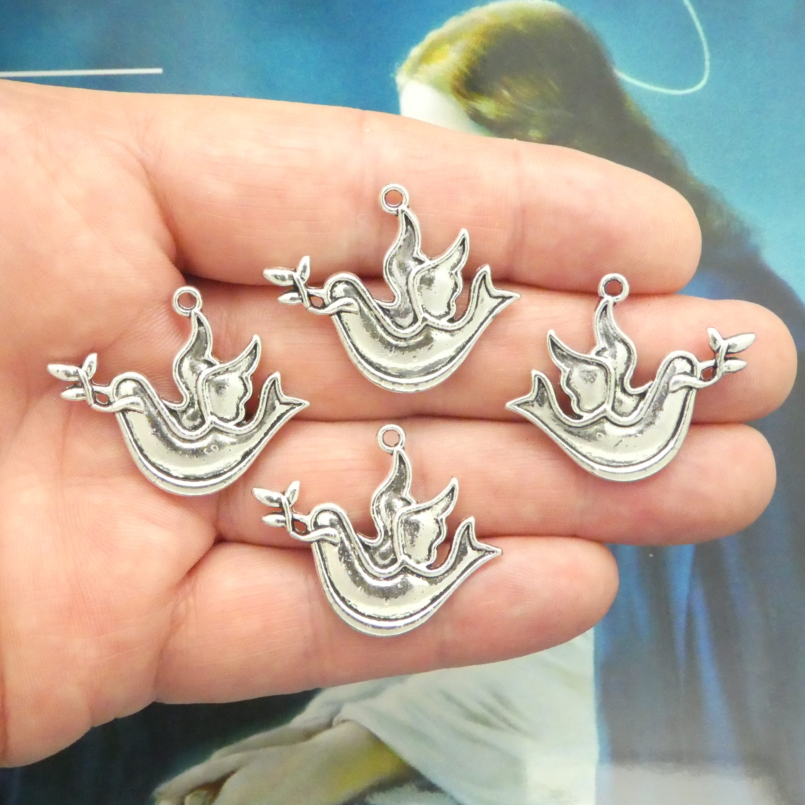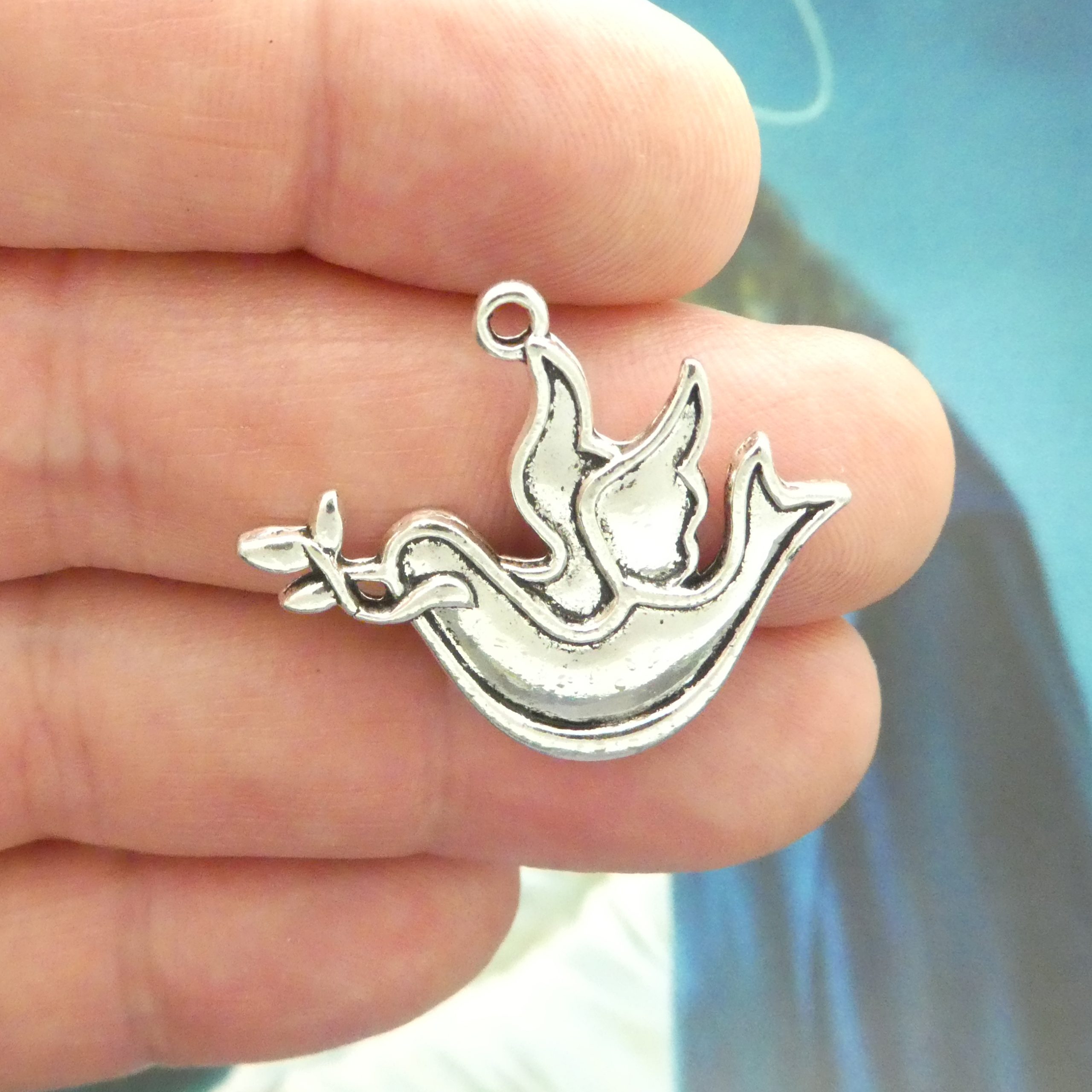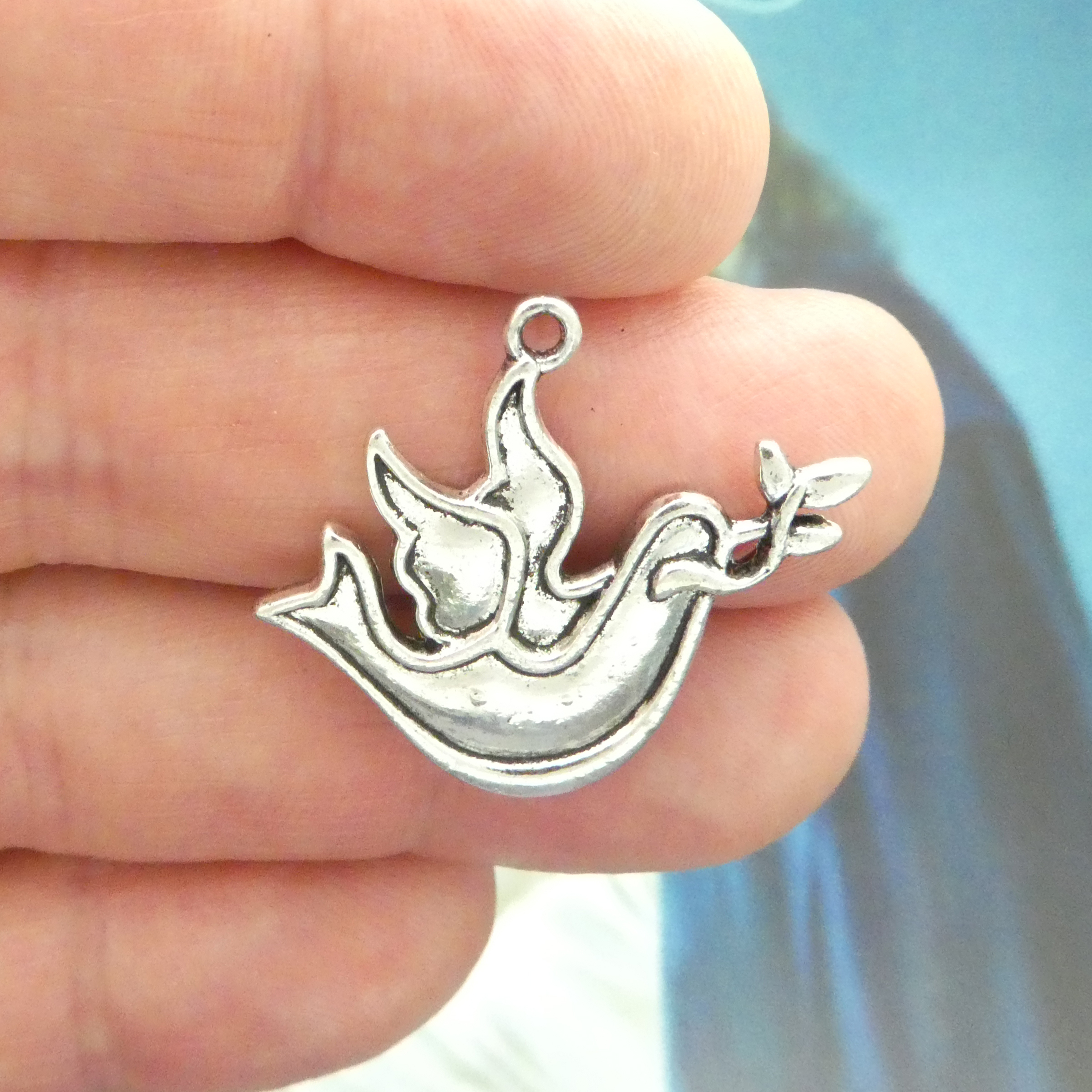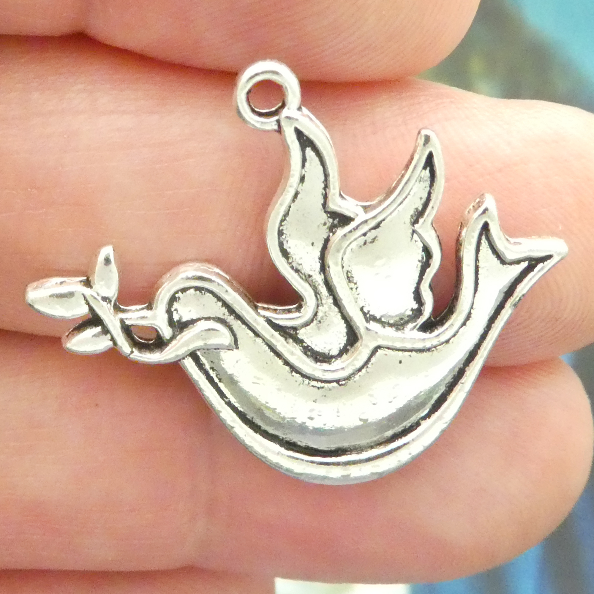 BULK 20 Silver Peace Dove Charm 27x34mm by TIJC SP0537B
