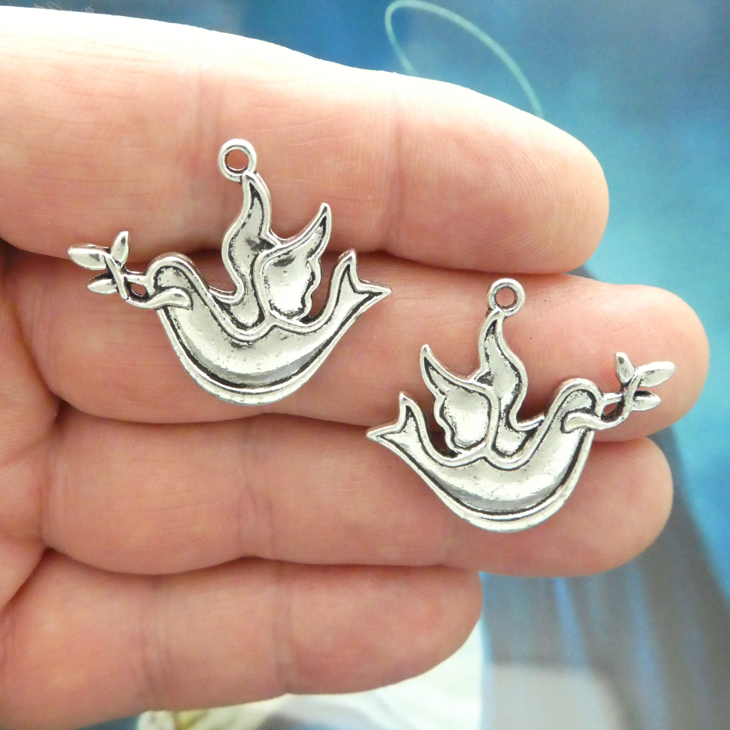 You will receive BULK 20 – Double Sided Dove Peace Charm in Antique Silver Pewter. These charms are a quality Silver Pewter for all your jewelry and crafting projects!