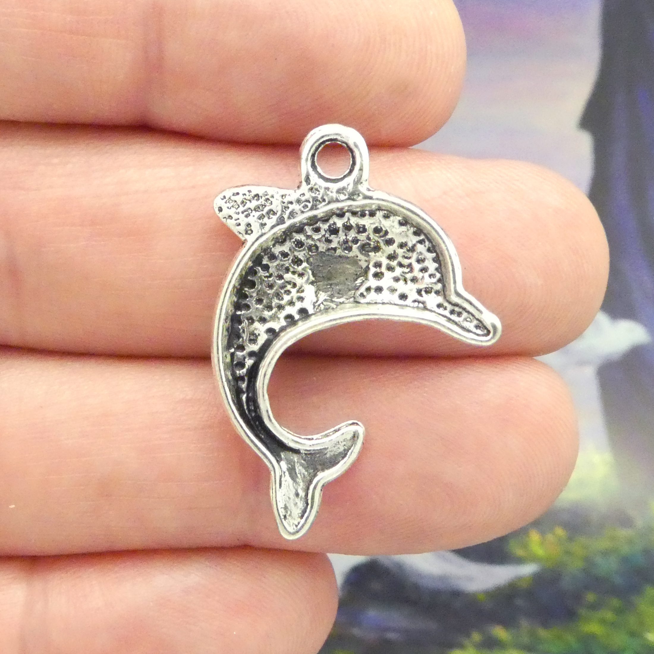 You will receive BULK 25 – Ornate Dolphin Pendant in Antique Silver Pewter! These charms are a quality Silver Pewter for all your jewelry and crafting projects!