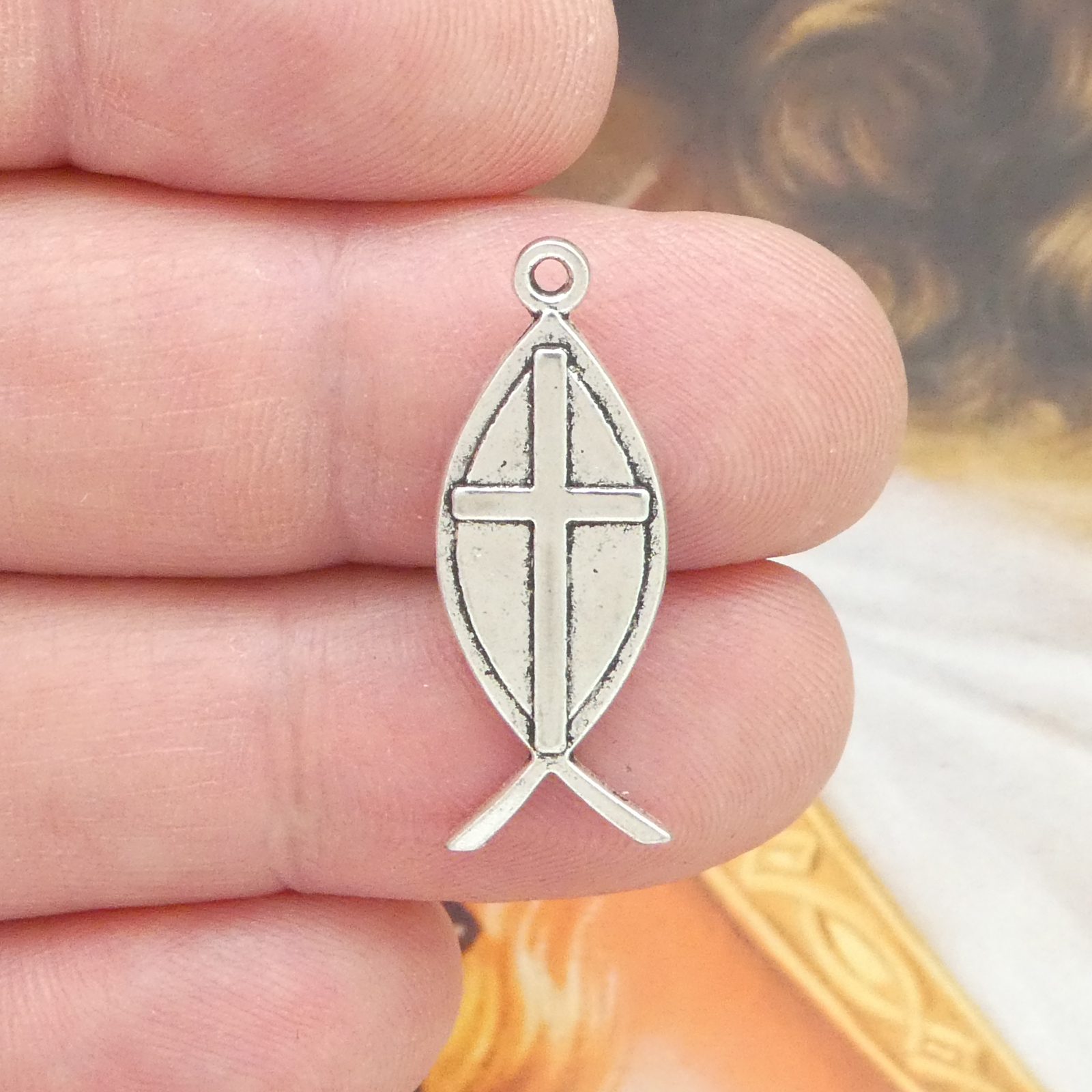 You will receive BULK 25 – Ichthus Christian Charm in Antique Silver Pewter. These charms are a quality Silver Pewter for all your jewelry and crafting projects!