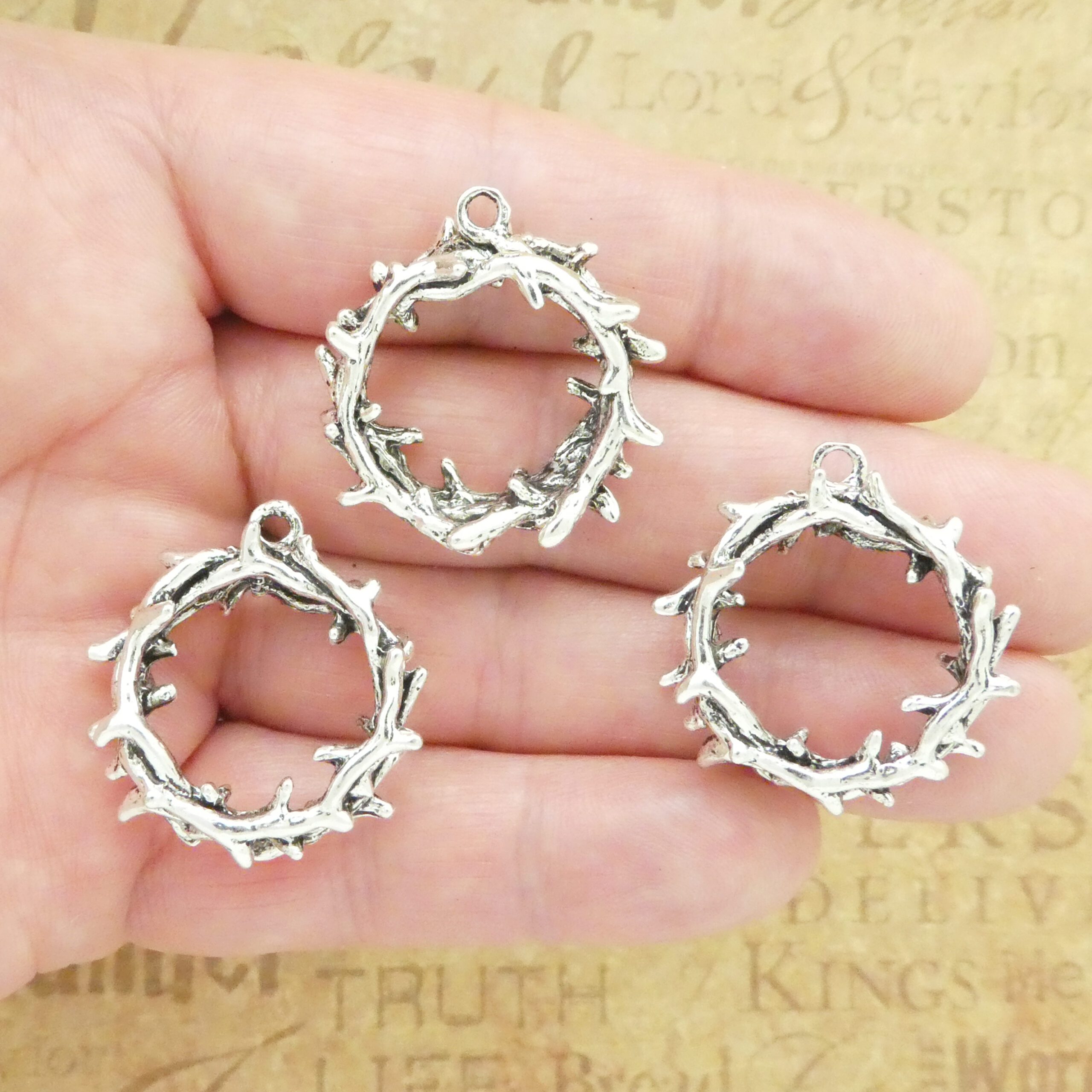 You will receive Bulk 3- Silver Crown of Thorns Pendant in Pewter by TIJC! These charms are a quality Silver Pewter for all your jewelry and crafting projects!