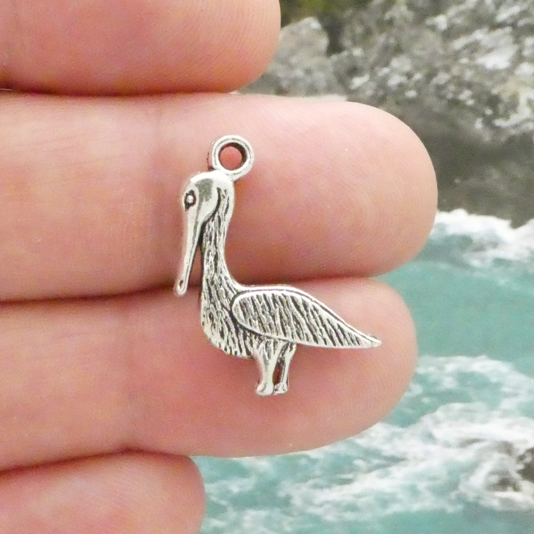 You will receive BULK 30 – Double Sided Pelican Charms in Antique Silver Pewter by TIJC! These charms are a quality Silver Pewter for all your jewelry and crafting projects!
