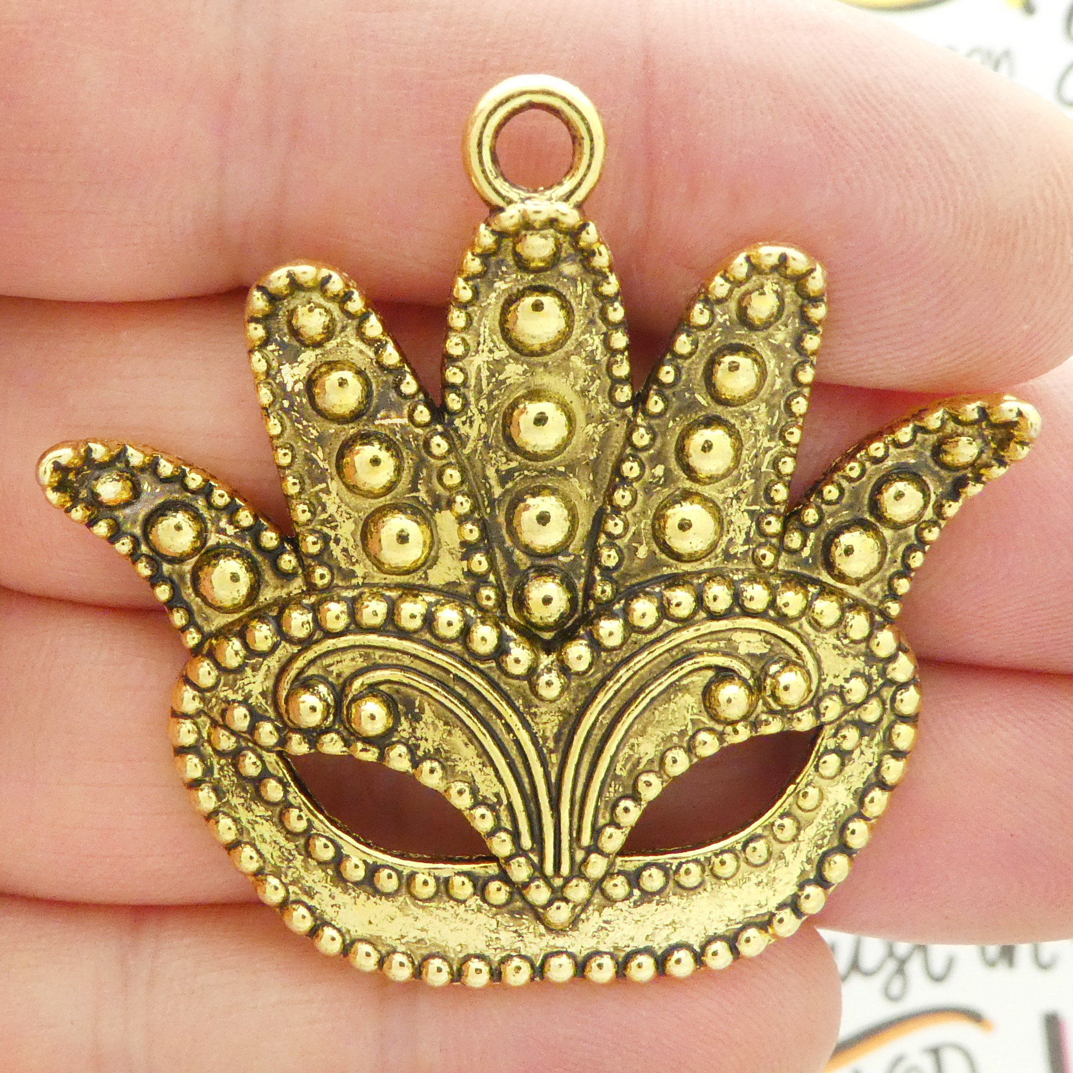 You will receive BULK 4 – Mask Charms in Gold Pewter by TIJC! These charms are a quality Pewter for all your jewelry and crafting projects!