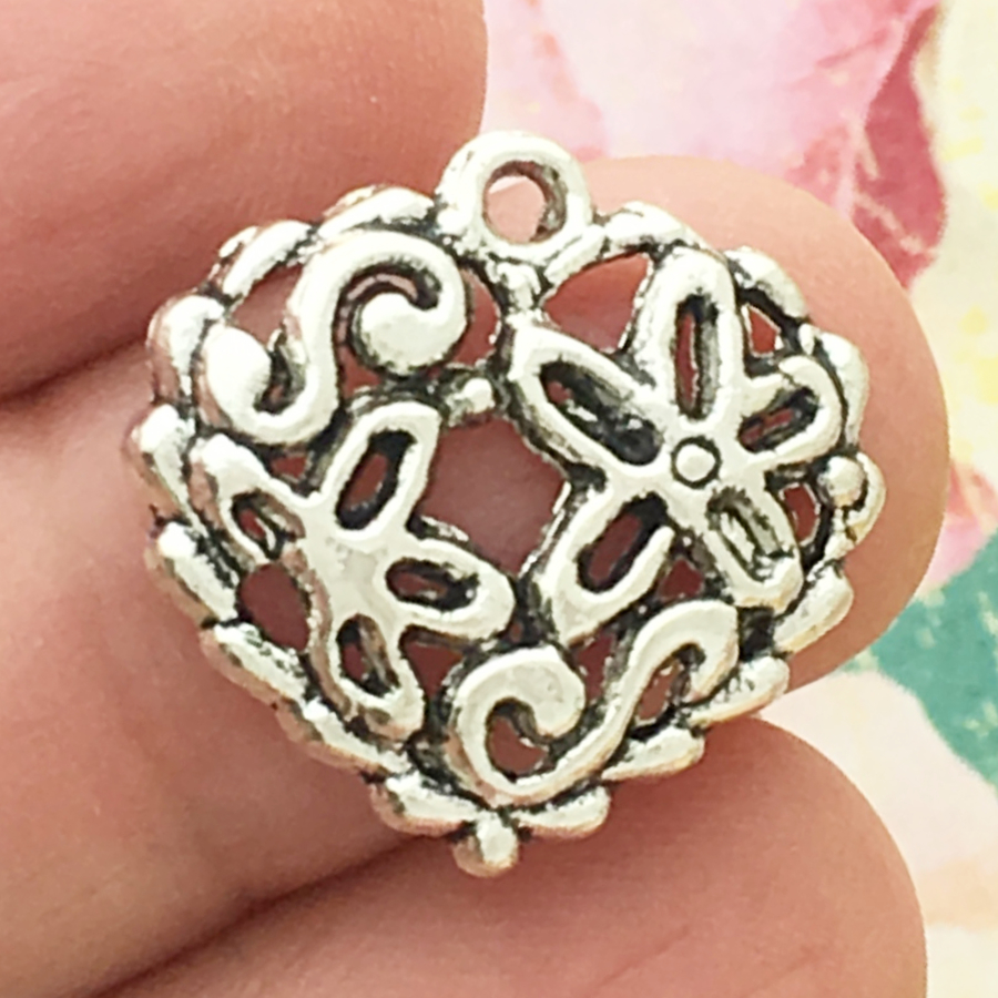 You will receive BULK 40 – Silver Heart Pewter Charm with Flower Design by TIJC! These charms are a quality Silver Pewter for all your jewelry and crafting projects!