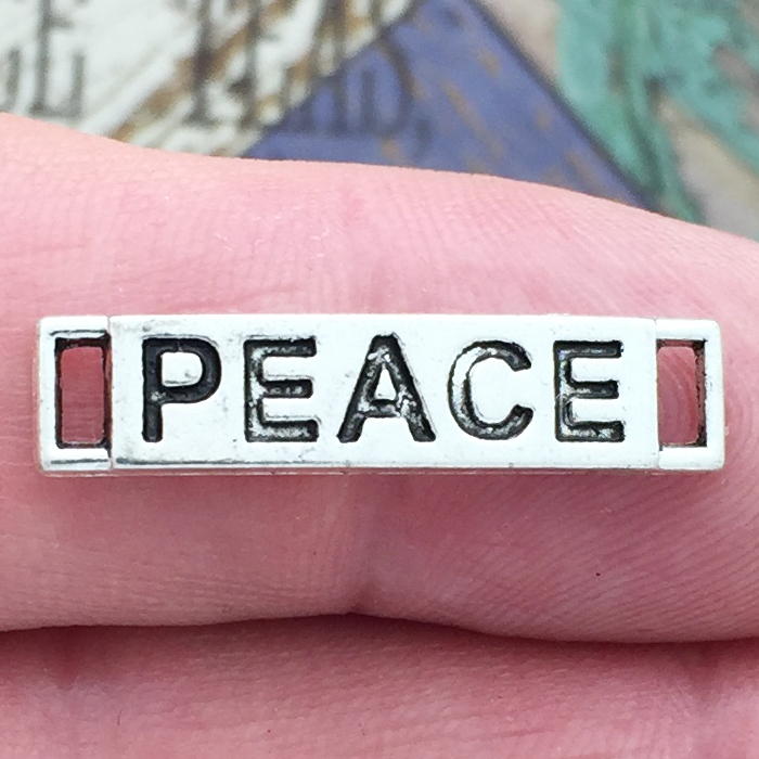 You will receive BULK 40- Message Peace Bracelet Connector Charms in Antique Silver Pewter by TIJC! These charms are a quality Silver Pewter for all your jewelry and crafting projects!