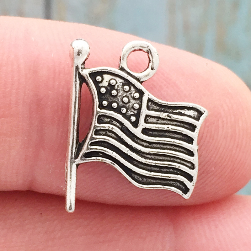 You will receive Bulk 40 – American Flag Charms in Antique Silver Pewter by TIJC! These charms are a quality Silver Pewter for all your jewelry and crafting projects!