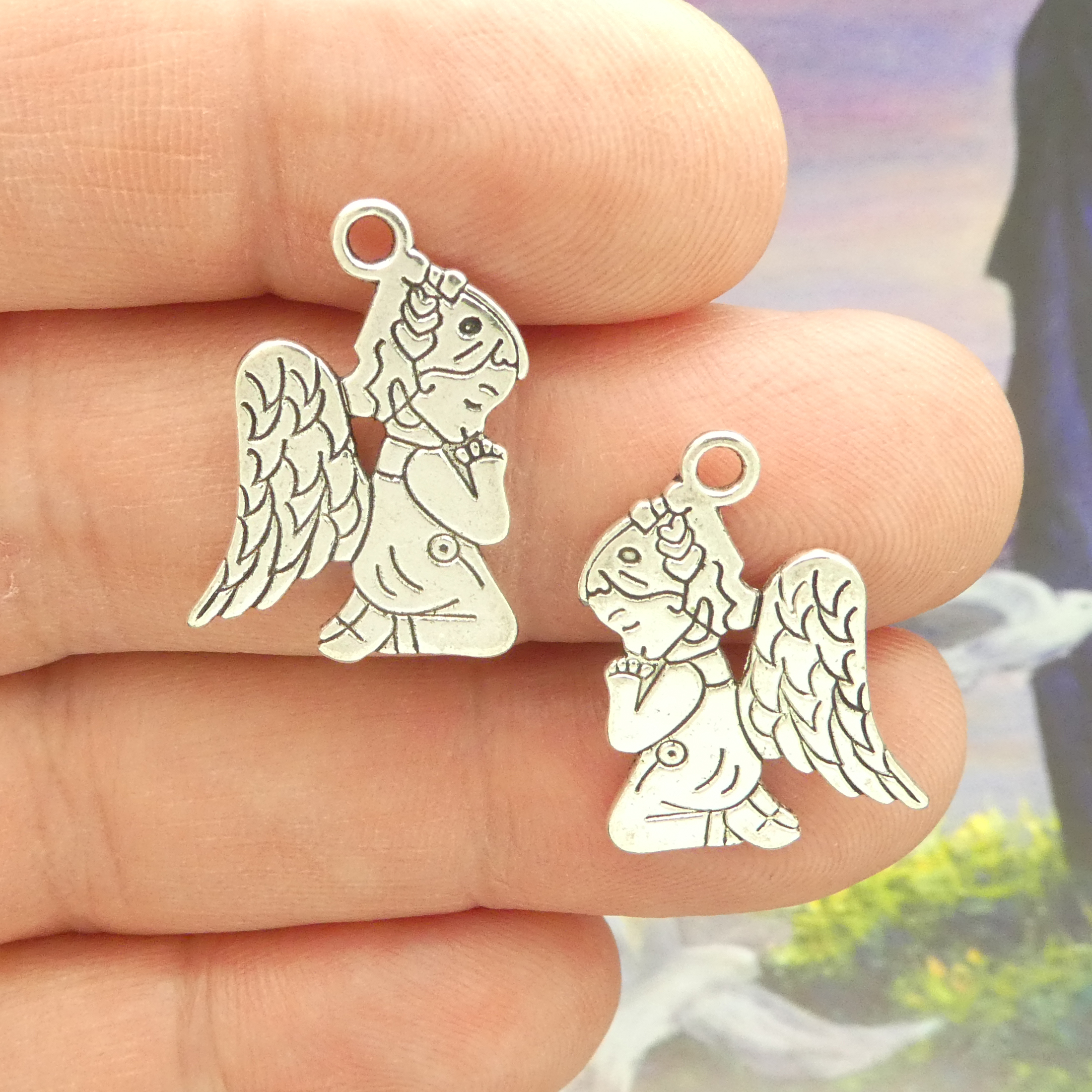 You will receive BULK 40 – Flat Angel Pendant Praying in Silver Pewter. These charms are a quality Silver Alloy for all your jewelry and crafting projects!