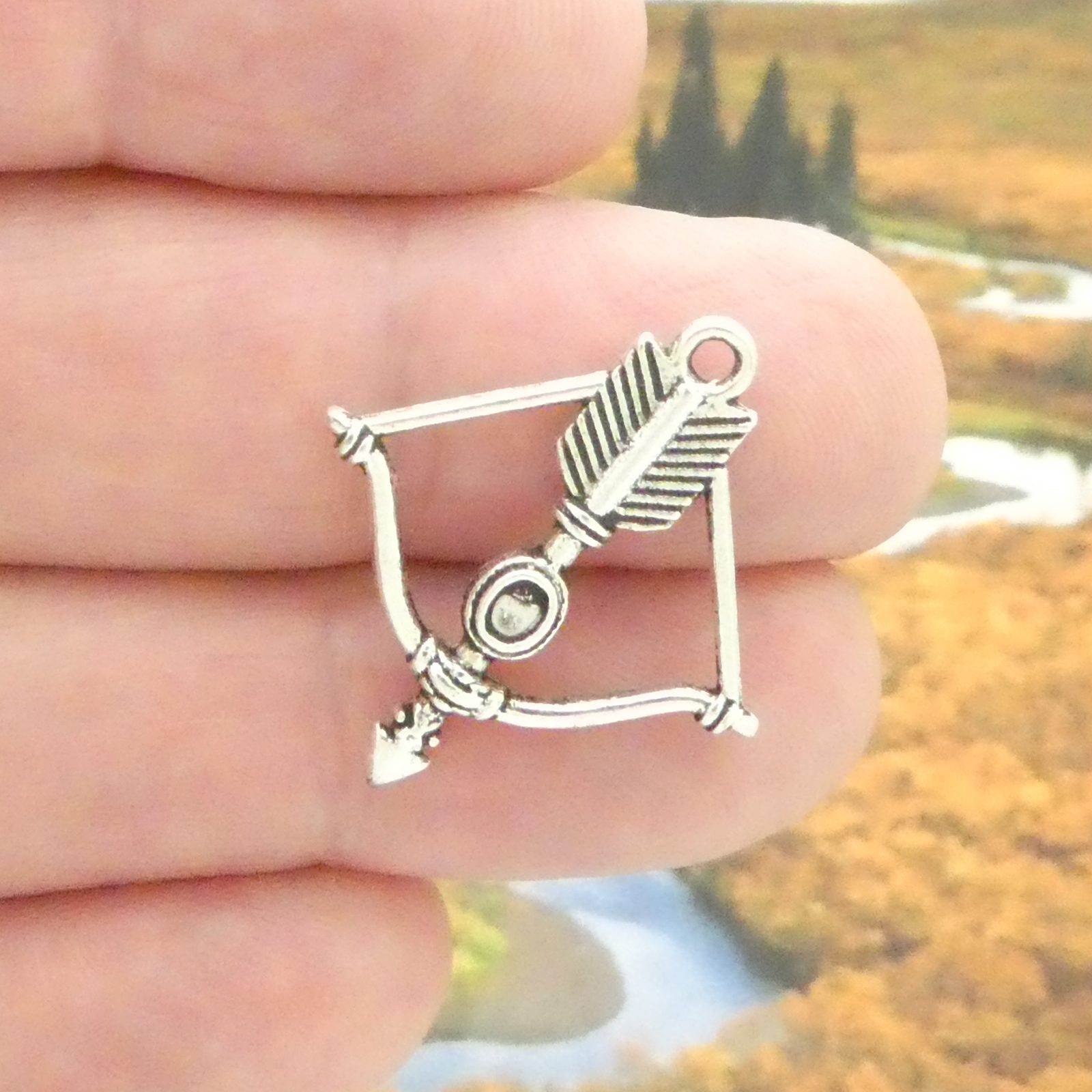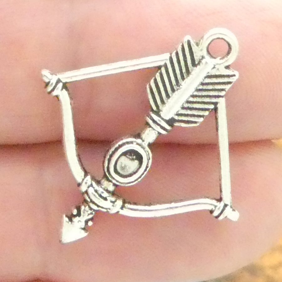 You will receive BULK 40 – 3D Bow and Arrow Charm in Silver Pewter! These charms are a quality Silver Alloy for all your jewelry + crafting projects!