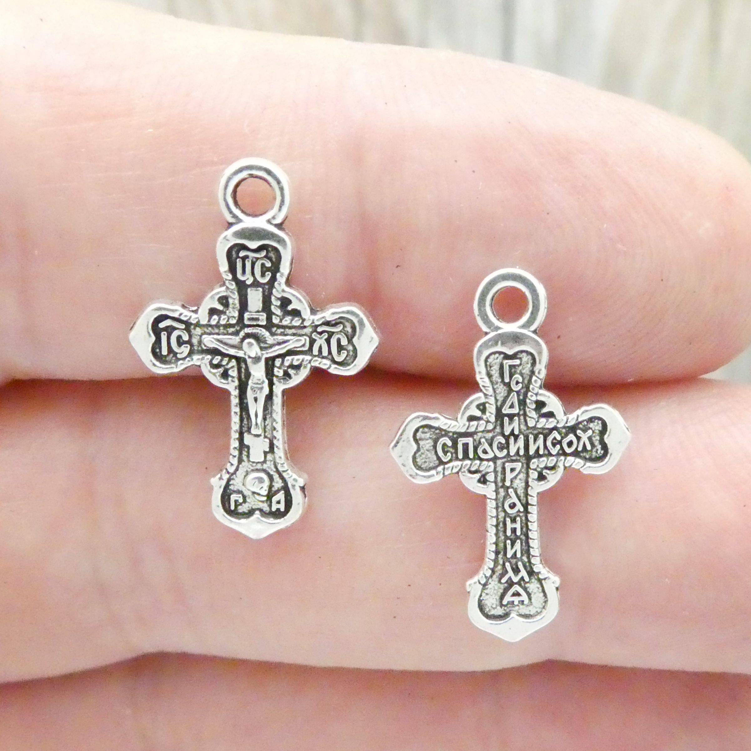 You will receive BULK 40 – Silver Cross Crucifix Charms in Pewter! Use this Antique Silver Pewter Cross for Rosary Parts in making a Catholic Rosary. These charms are a quality Silver Pewter for all your jewelry and crafting projects!