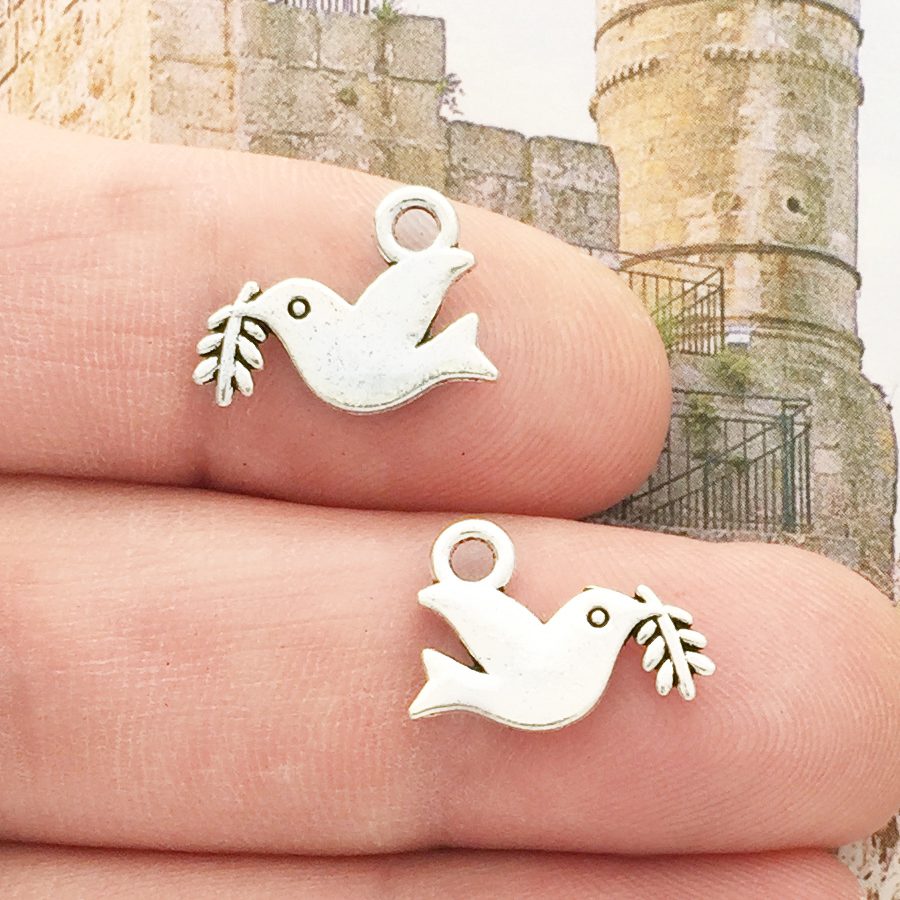 BULK 40 Small Silver Peace Dove Charm by TIJC SP1022B
