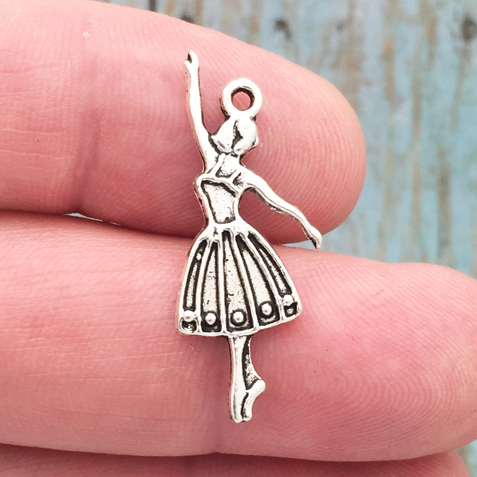 You will receive BULK 50 – Double Sided Ballerina Dance Charms in Antique Silver Pewter. These charms are a quality Silver Pewter for all your jewelry and crafting projects!