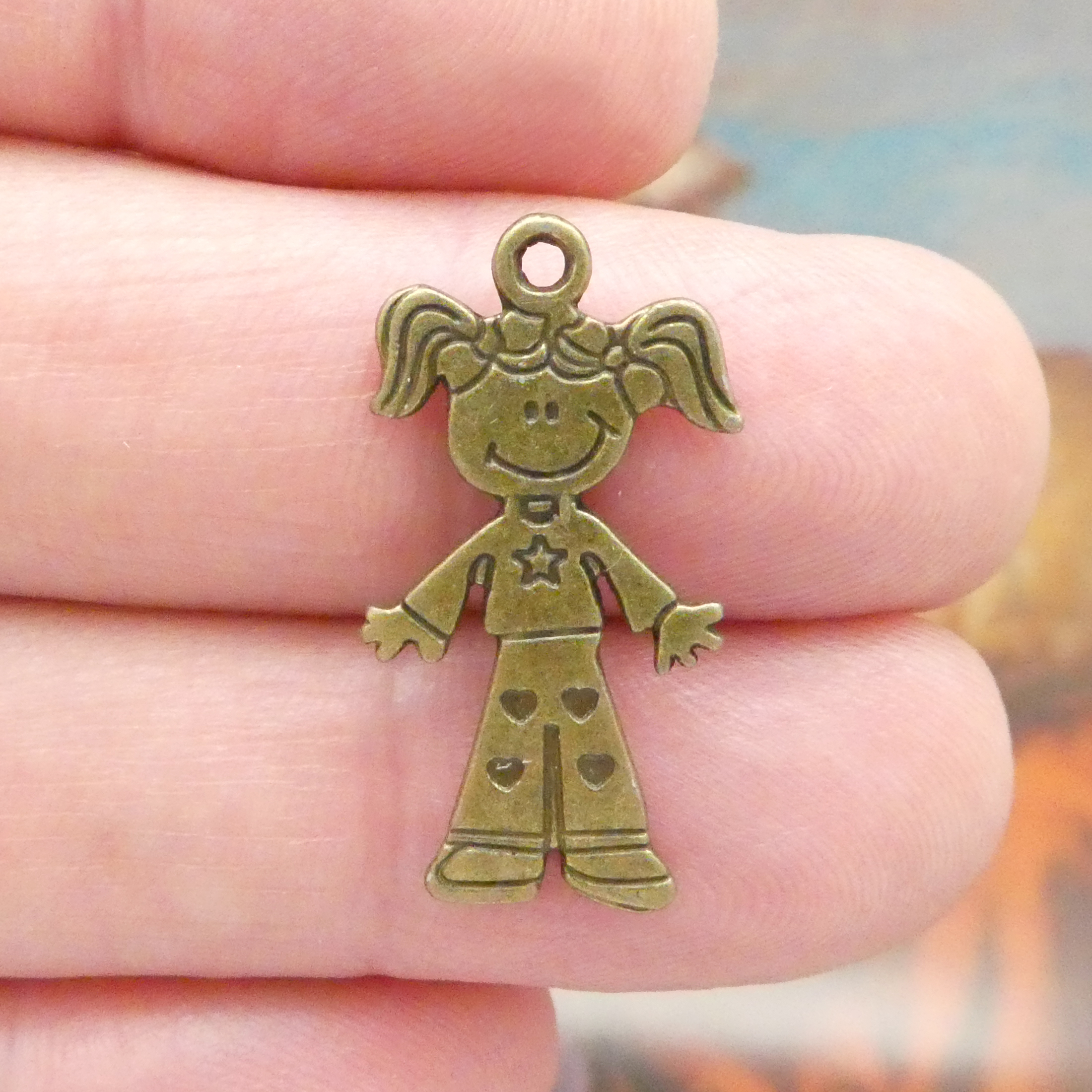 You will receive BULK 40 – Double Sided Girl Charm in Antique Bronze Pewter. These charms are a quality Pewter for all your jewelry and crafting projects!