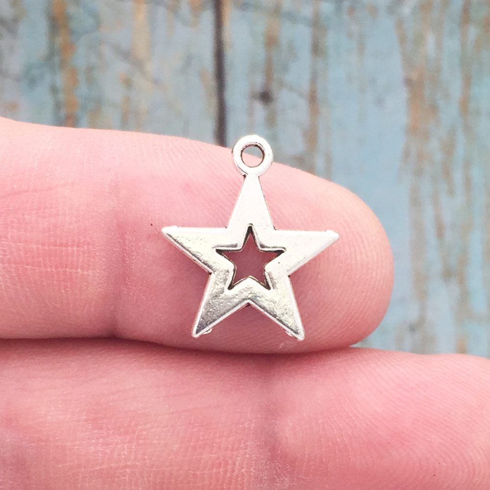 Bulk 50 Silver Star Charm Pendant by TIJC SP1218B
