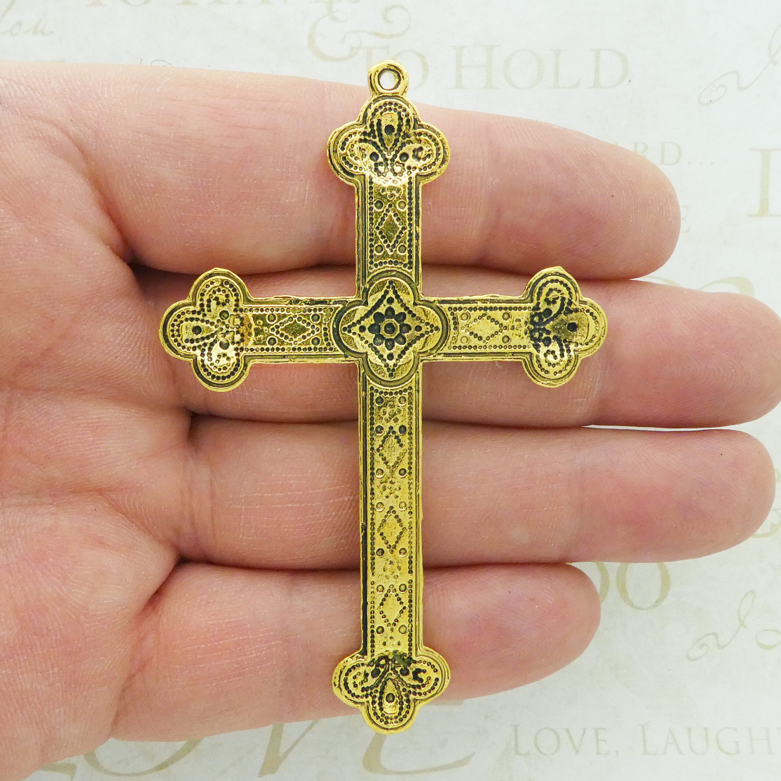 You will receive BULK 6 – Large Christian Cross Charm in Antique Gold Pewter by TIJC. These charms are a quality Pewter for all your jewelry and crafting projects!