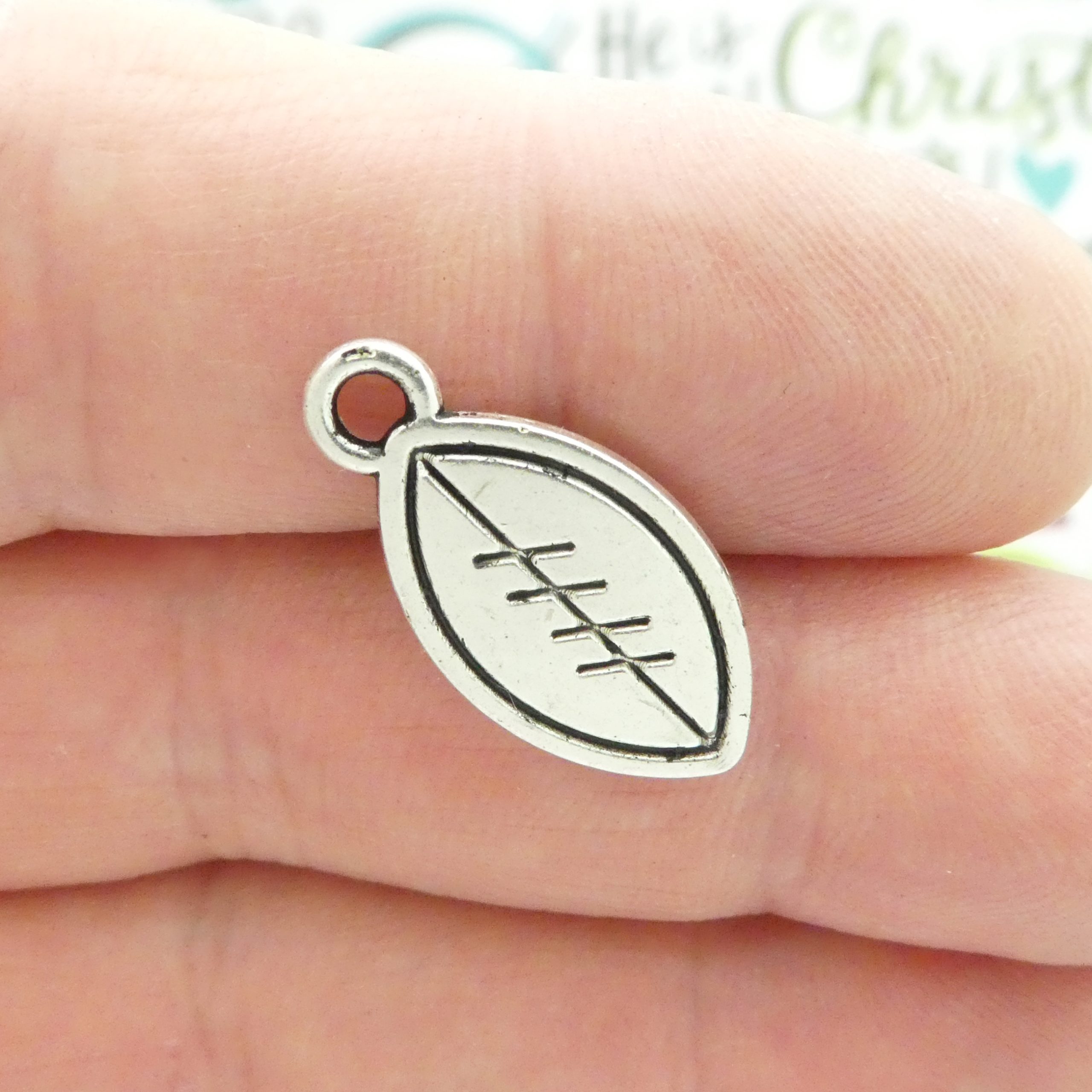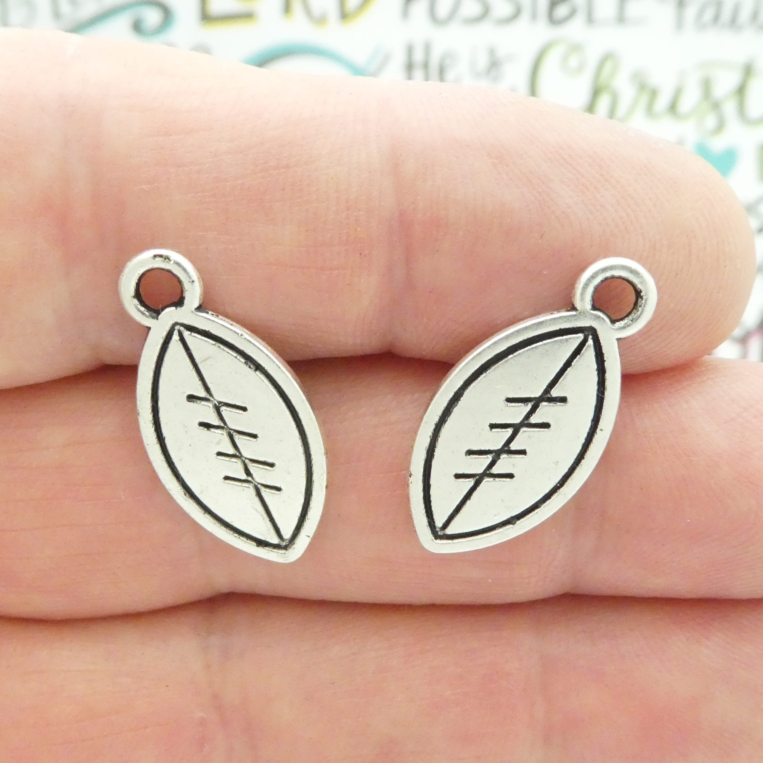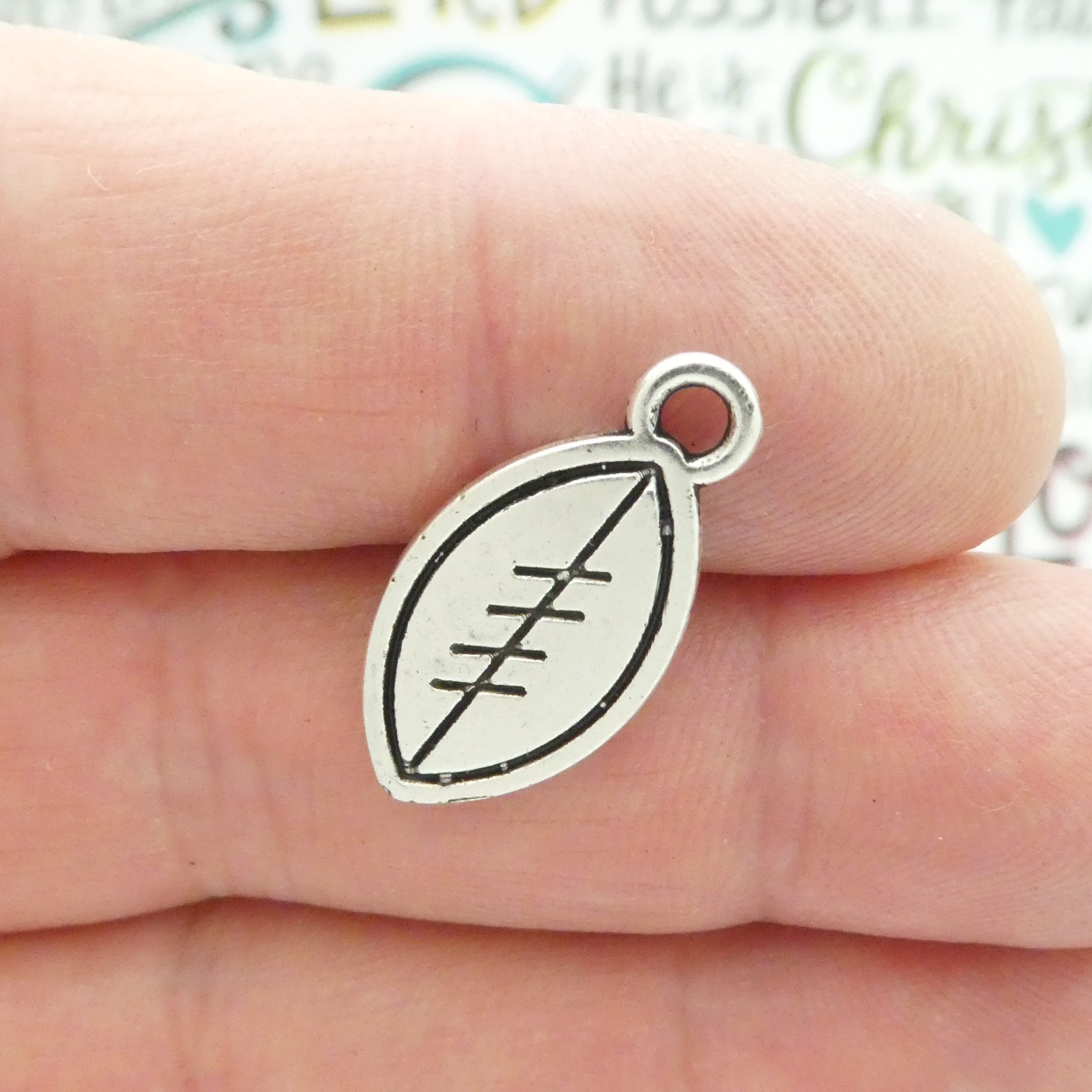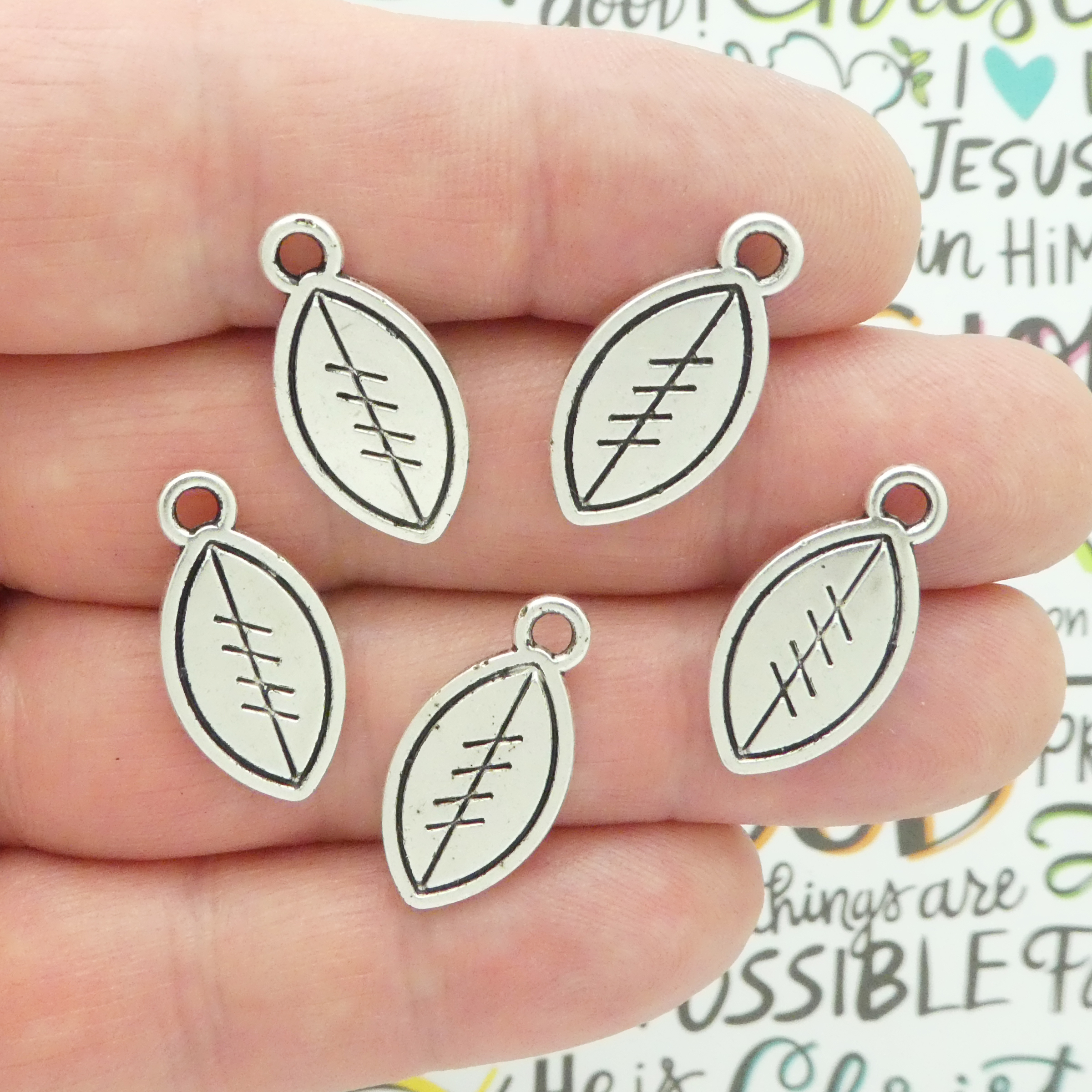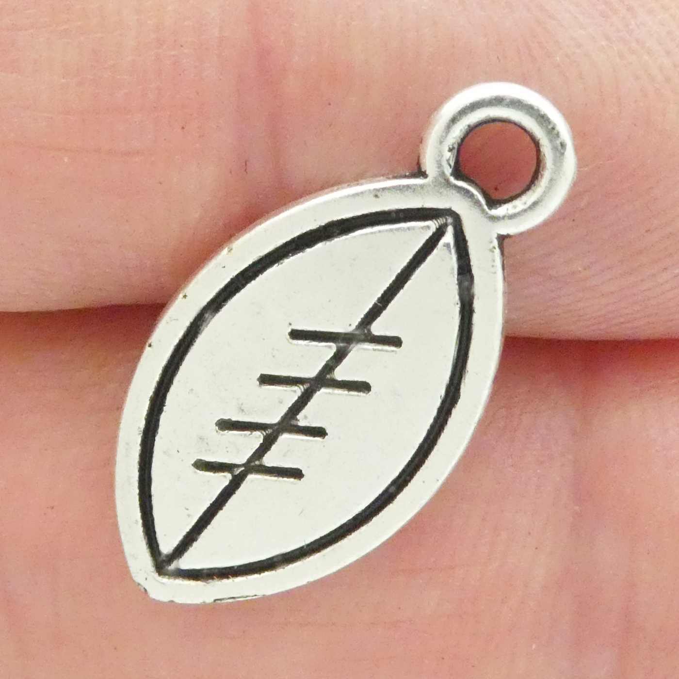 You will receive BULK 60 – Flat Double Sided Football Charms in Antique Silver Pewter. These charms are a quality Silver Pewter for all your jewelry and crafting projects!
